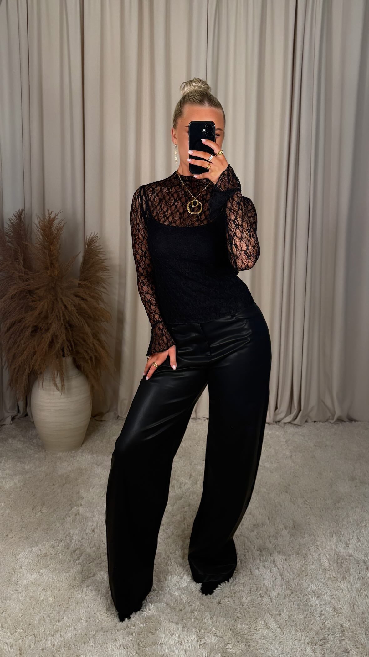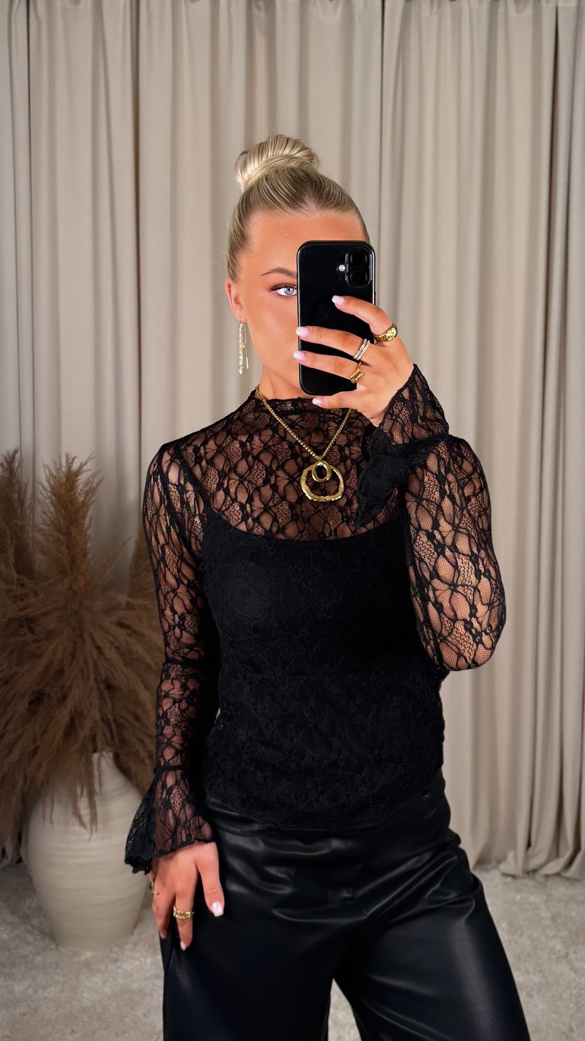 Fallegur blúndu bolur úr mjög þæginlegu efni, það er teygja í efninu, undirbolurinn fylgir ekki með