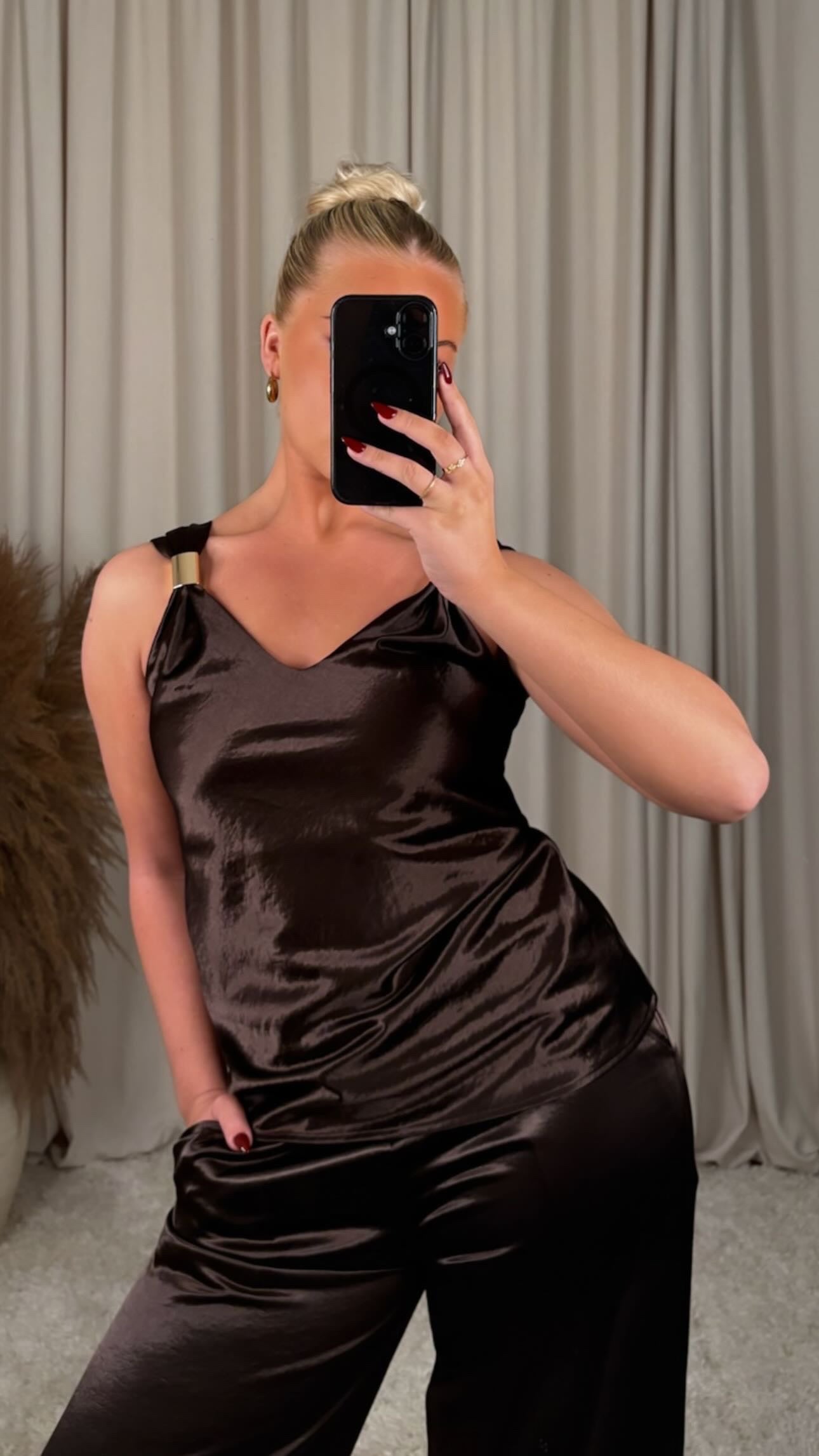 Æðislega fallegur bolur úr mjög mjúku satín efni, það er engin teygja í efninu
