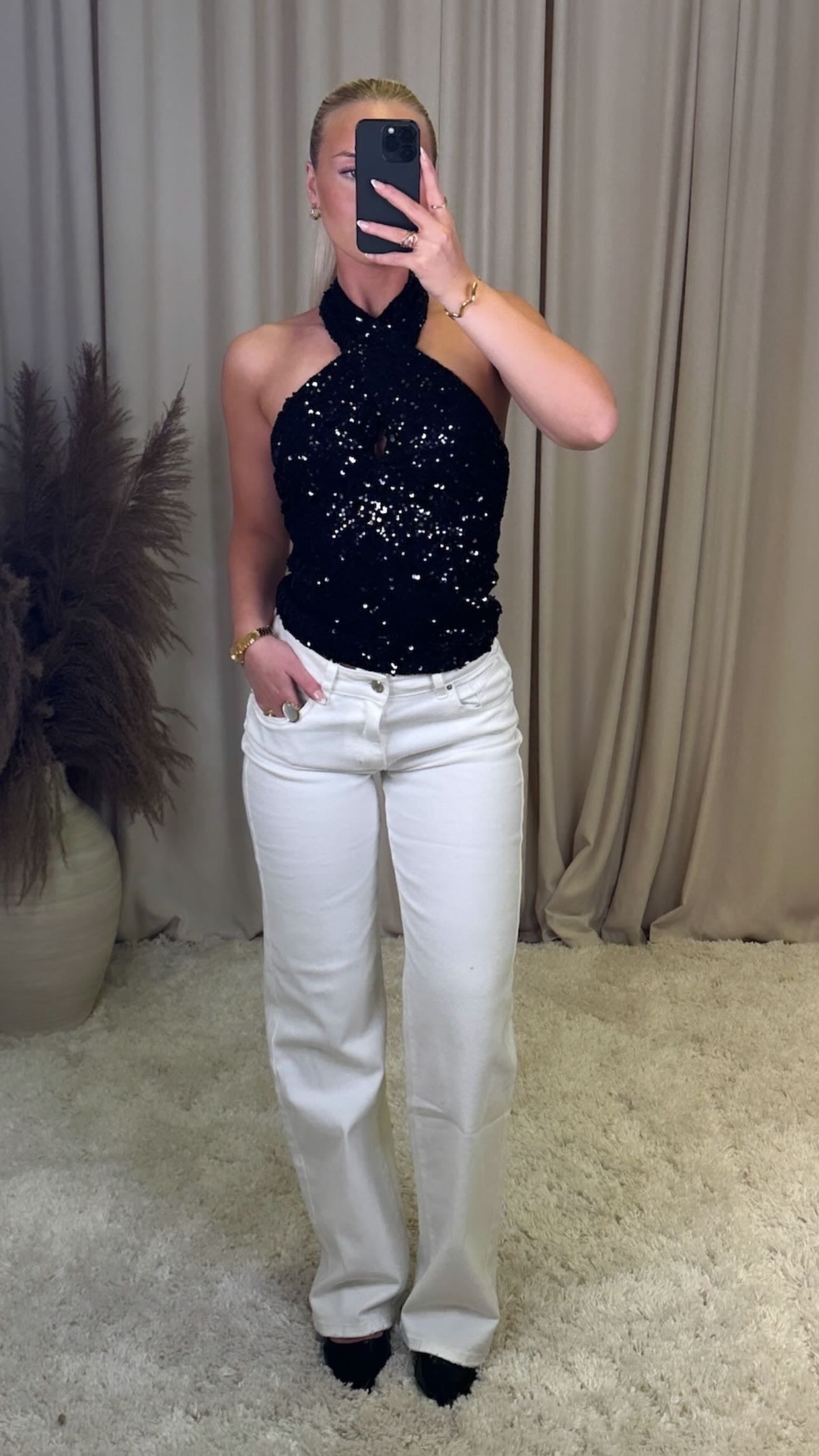 Æðislega fallegur pallíettu bolur úr mjög þæginlegu efni, það er smá teygja í efninu og er með rennilás að aftan, bolurinn eru með tvöföldu efni þannig að pallietturnar stinga ekki í gegn
