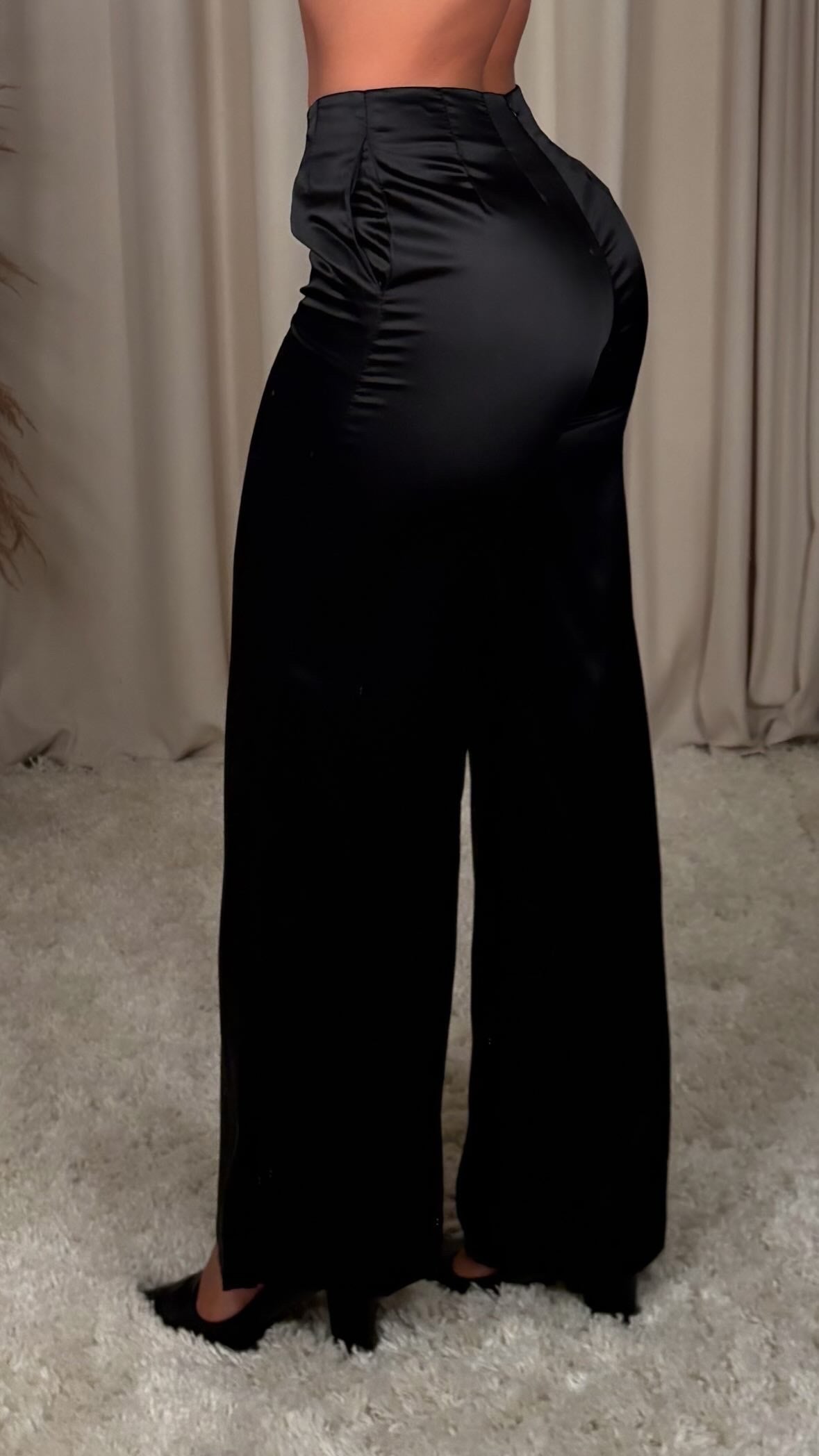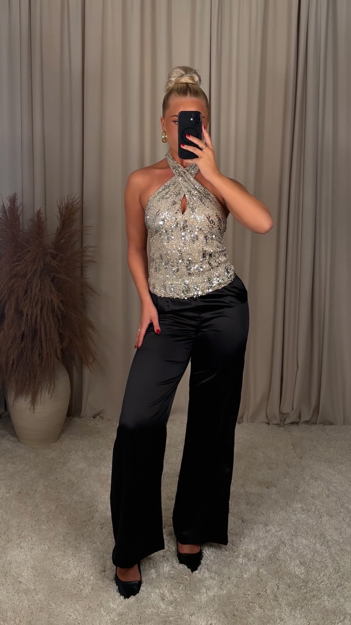 Æðislega flottar buxur úr mjög mjúku satín efni, það er engin teygja í efninu og er með rennilás að aftan