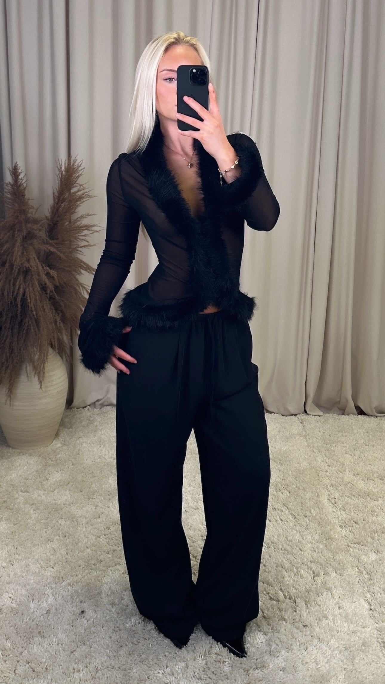 Æðislega flottar buxur úr mjög mjúku og þæginlegu efni, það er engin teygja í efninu en er með teygju í mittinu