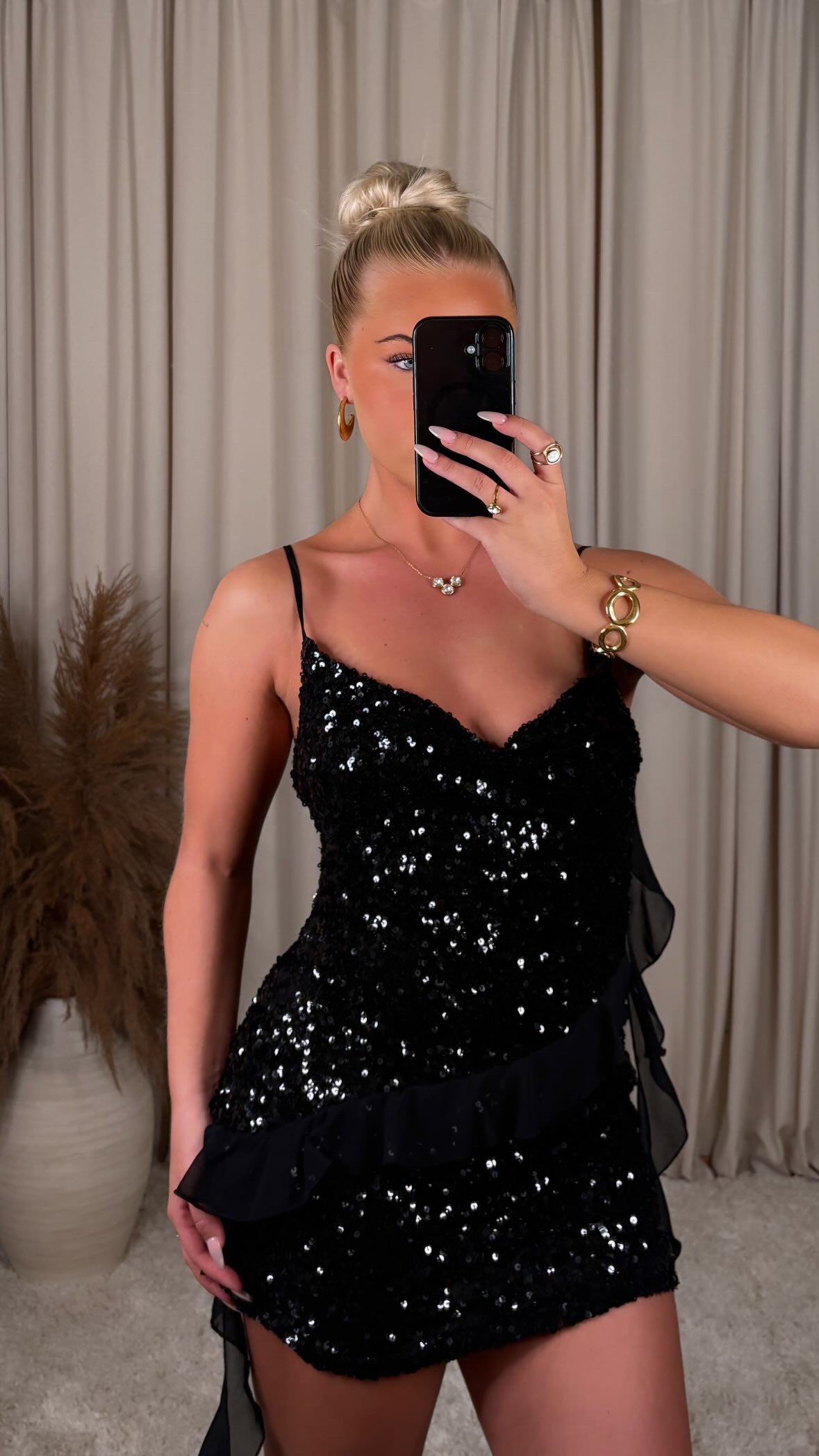 Æðislega flottur pallíettu kjóll úr mjög þæginlegu efni, það er góð teygja í efninu og er með tvöfalt efni þannig að pallietturnar stingá ekki í gegn