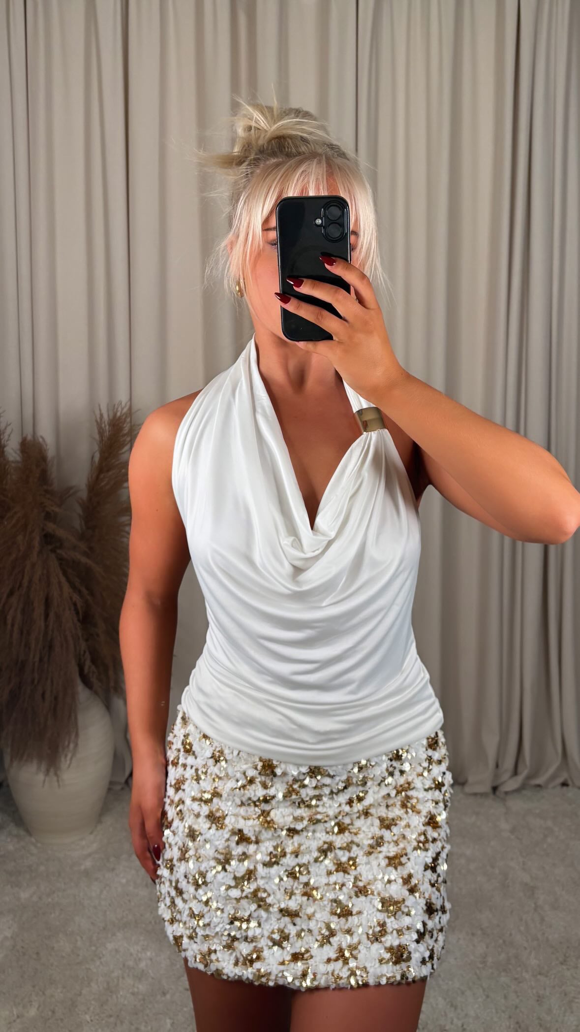 Æðislega fallegt pallíettu pils úr tvöföldu efni þannig að pallietturnar stinga ekki í gegn, það er engin teygja í efninu og er með rennilás á hliðinni