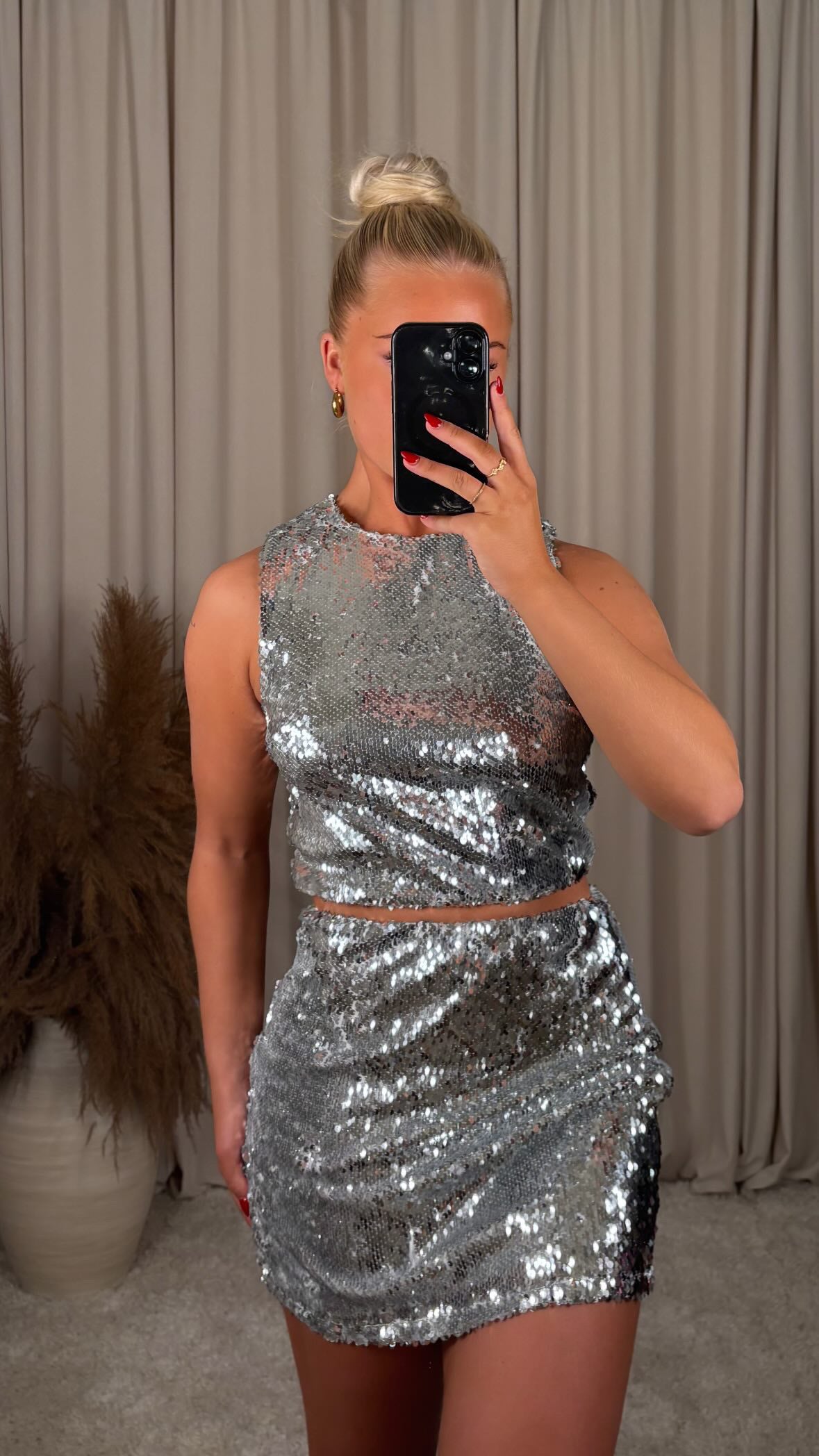 Æðislega flott pallíettu pils úr mjög þæginlegu efni, það er lítil teygja í efninu og er með rennilás á hliðinni