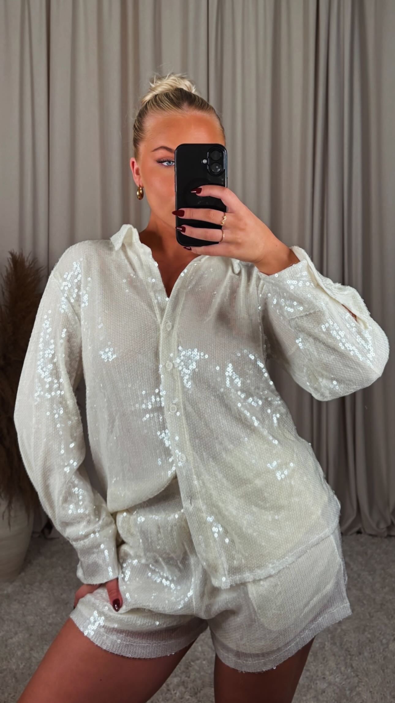 Æðislega flott pallíettu skyrta úr mjög þæginlegu efni, það er engin teygja í efninu
