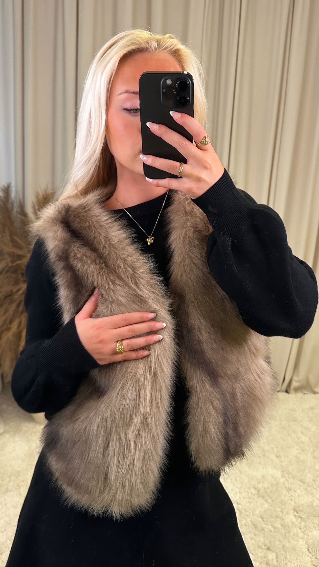Sjúklega flott vesti úr hágæða vegan loði, það er engin teygja í efninu og eru smá oversized