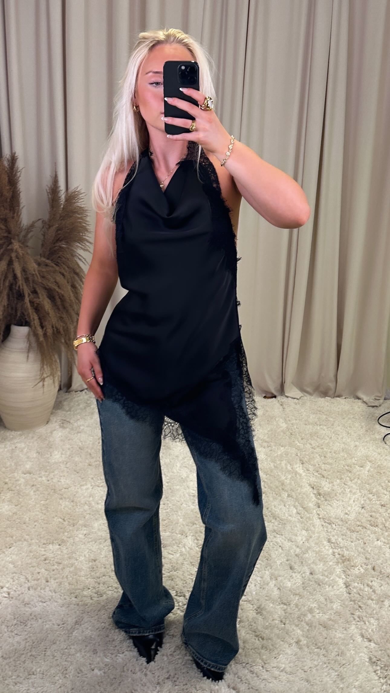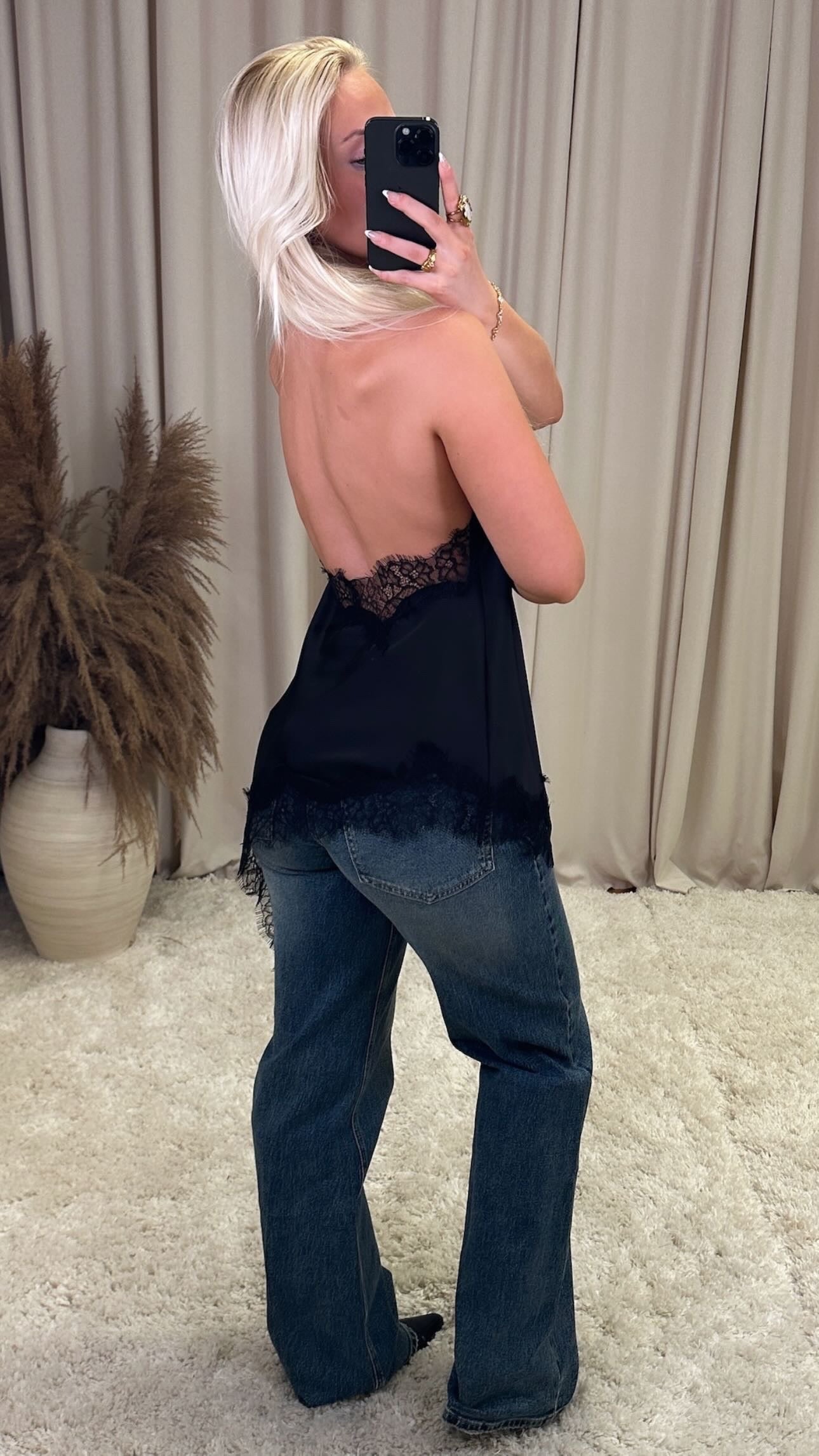 Æðislega fallegur bolur úr mjög mjúku satín efni, það er engin teygja í efninu