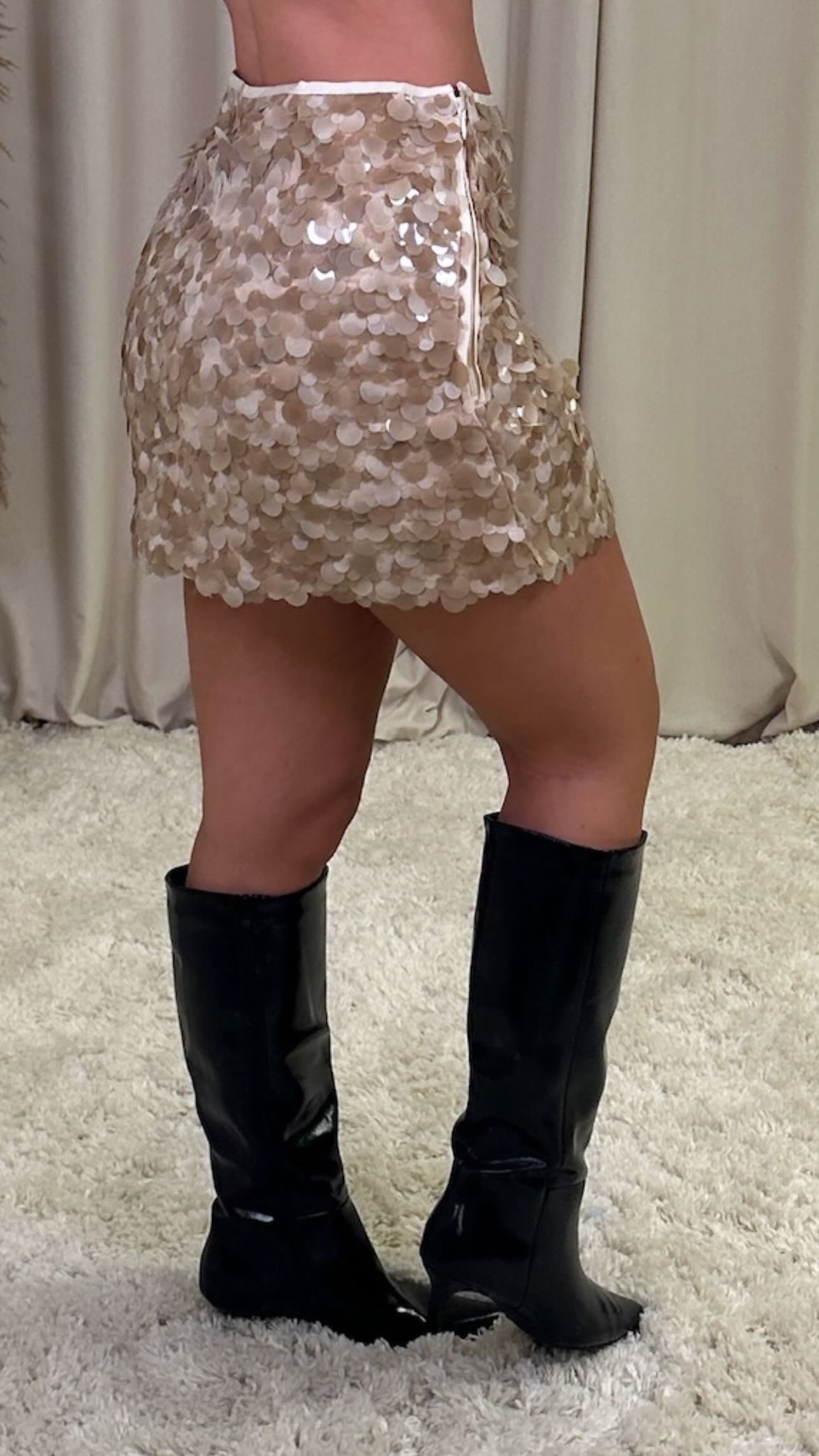 Æðislega fallegt pallíettu pils úr mjög þæginlegu efni, það er engin teygja í efninu og er með rennilás a hliðinni, pilsið er með tvöfalt efni þannig að pallietturnar stinga ekki í gegn
