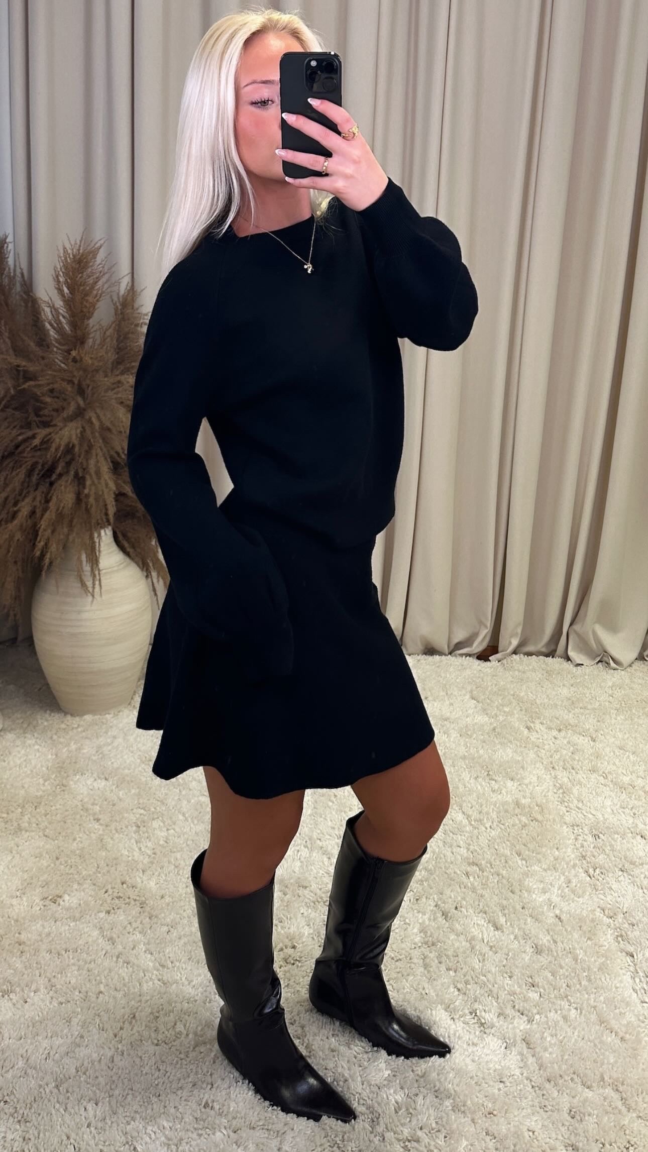 Æðislega flott sett úr mjög þæginlegu knit efni, það er góð teygja í efninu og pilsið er með teygju í mittinu