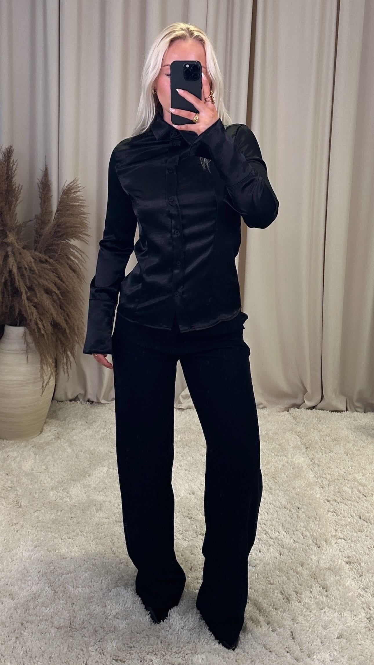 Æðislega flott satín skyrta úr mjög mjúku efni, það er engin teygja í efninu og er lítil í stærðum