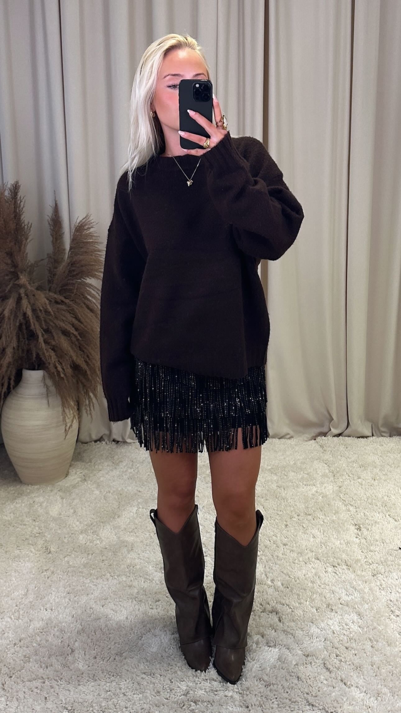 Æðislega fallegt kögur pils úr hágæða vegan rúskinni, það er engin teygja í efninu og er með rennilás a hliðinni