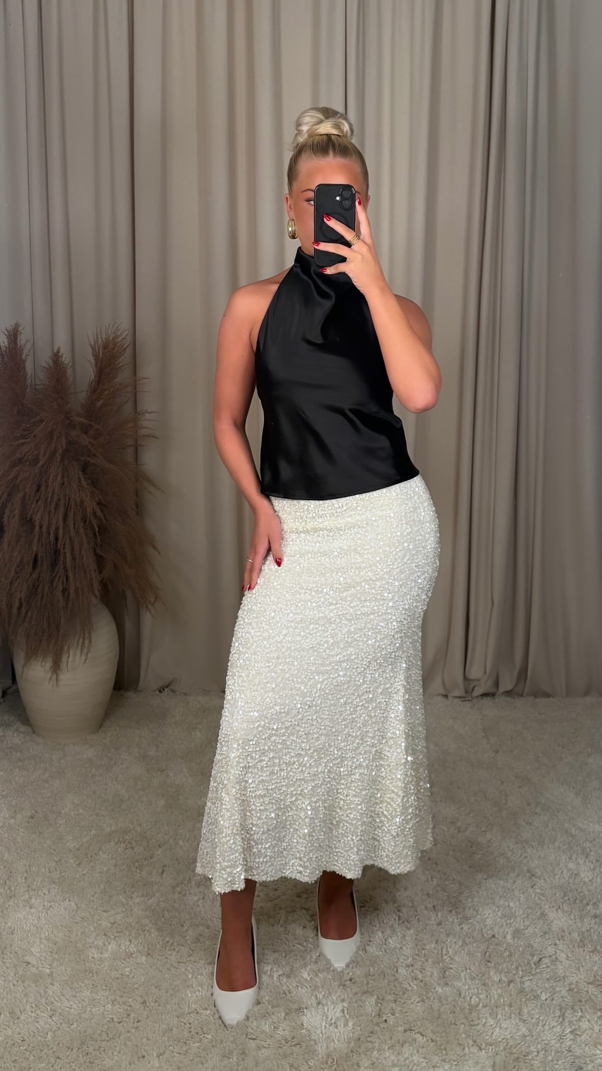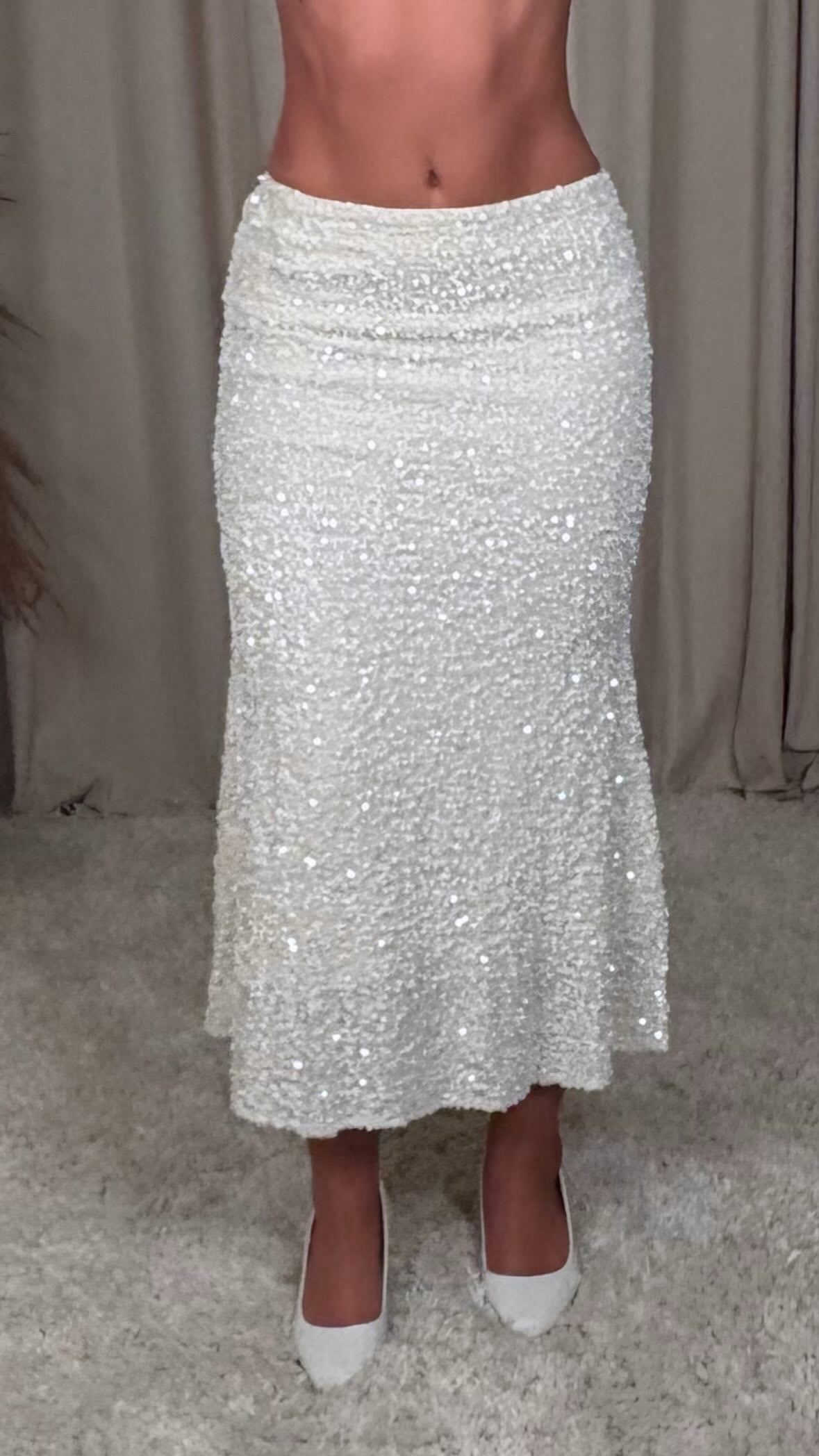 Æðislega flott pallíettu pils úr mjög þæginlegu efni, það er teygja í efninu og er með tvöfalt efni þannig að pallietturnar stinga ekki í gegn