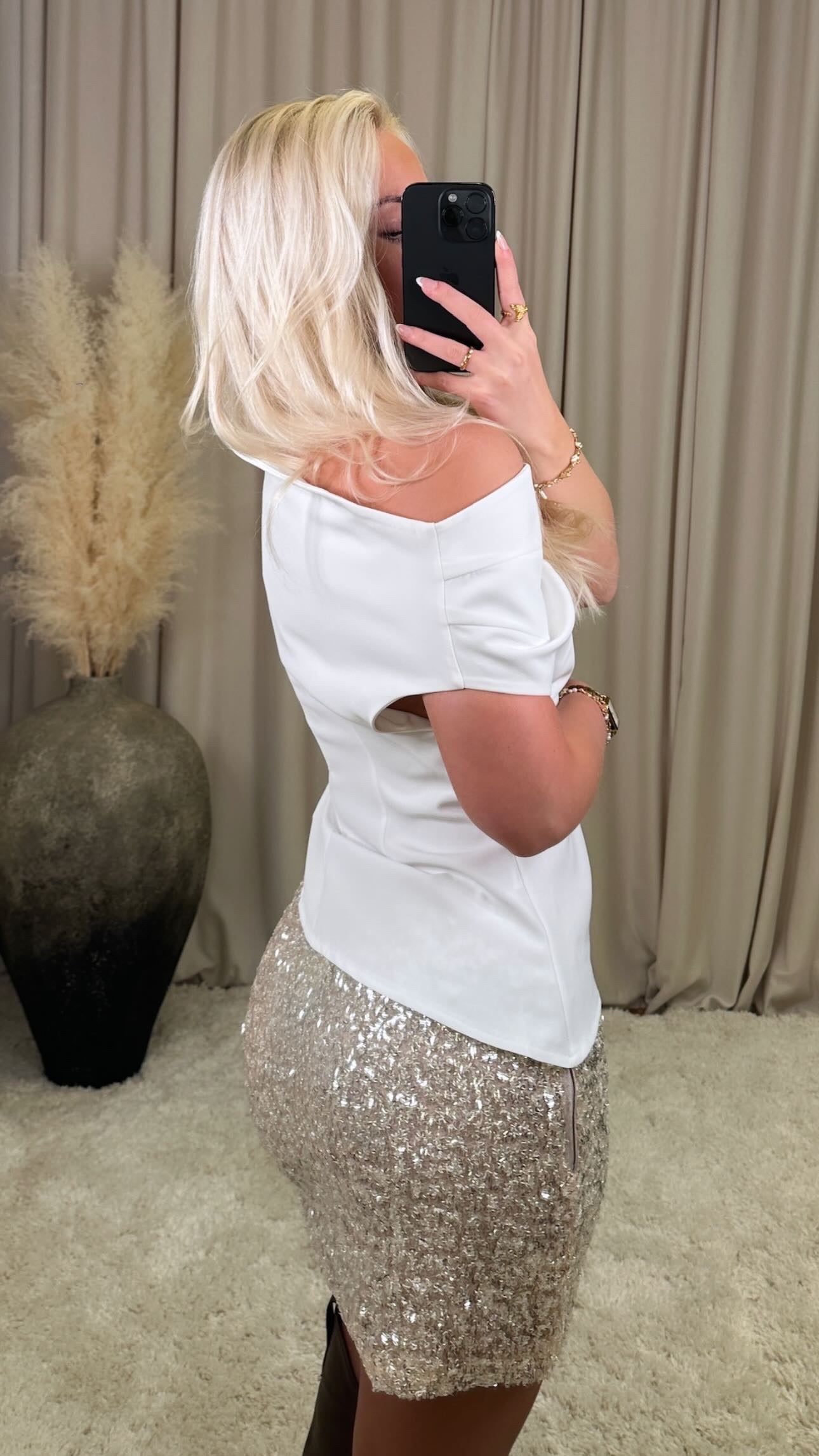 Æðislega fallegur bolur úr mjög þæginlegu dragtarefni, það er engin teygja í efninu og er með rennilás a hliðinni