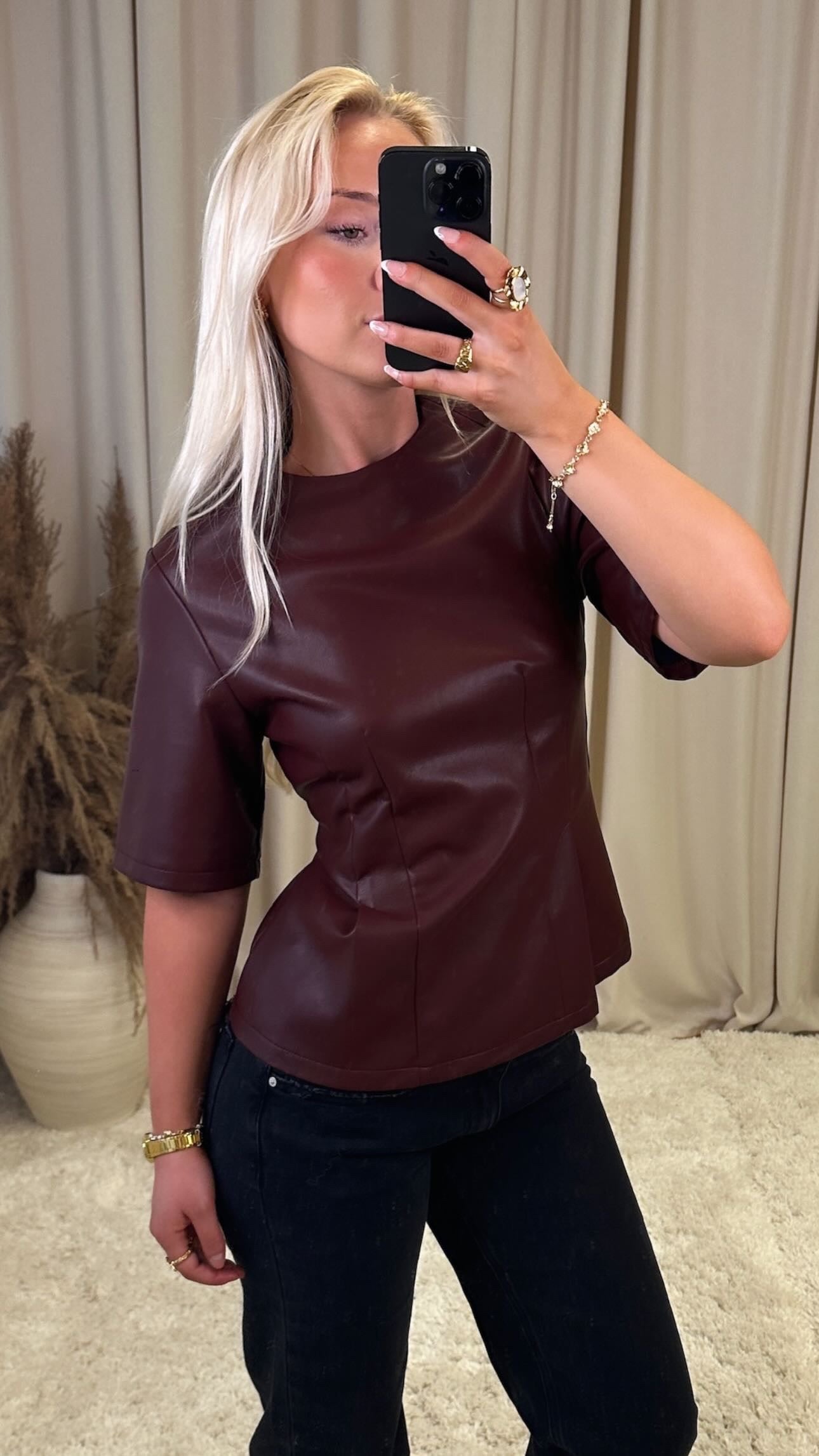 Æðislega flottur bolur úr hágæða vegan leðri, það er smá teygja í efninu og er með rennilás að aftan