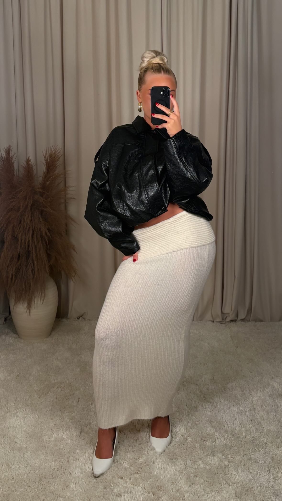 Æðislega flott pils úr mjög þæginlegu knit efni, það er teygja í efninu