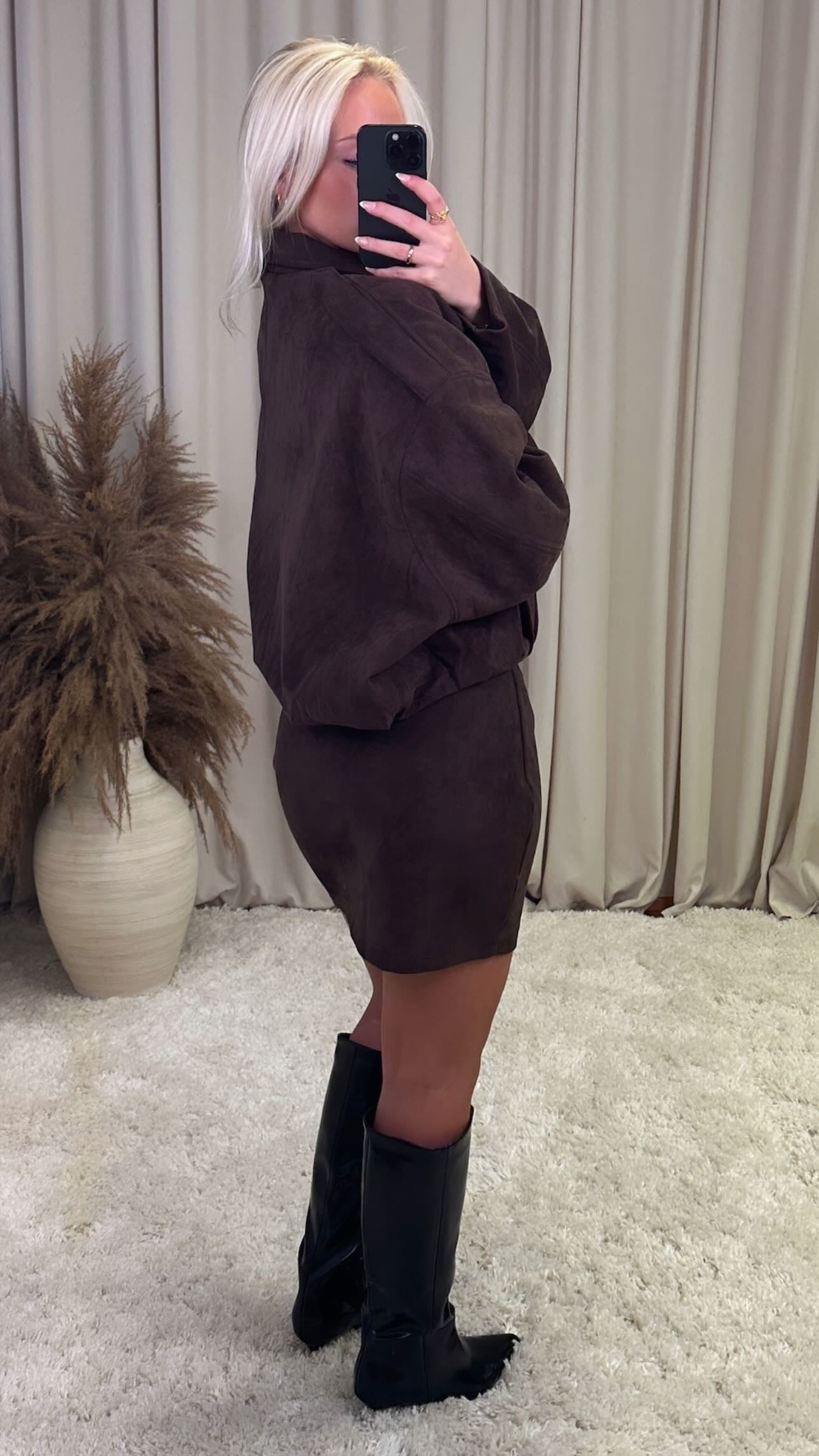 Sjúklega fallegur jakki úr hágæða vegan rúskinni, það er engin teygja í efninu en jakkinn er oversized i sniði