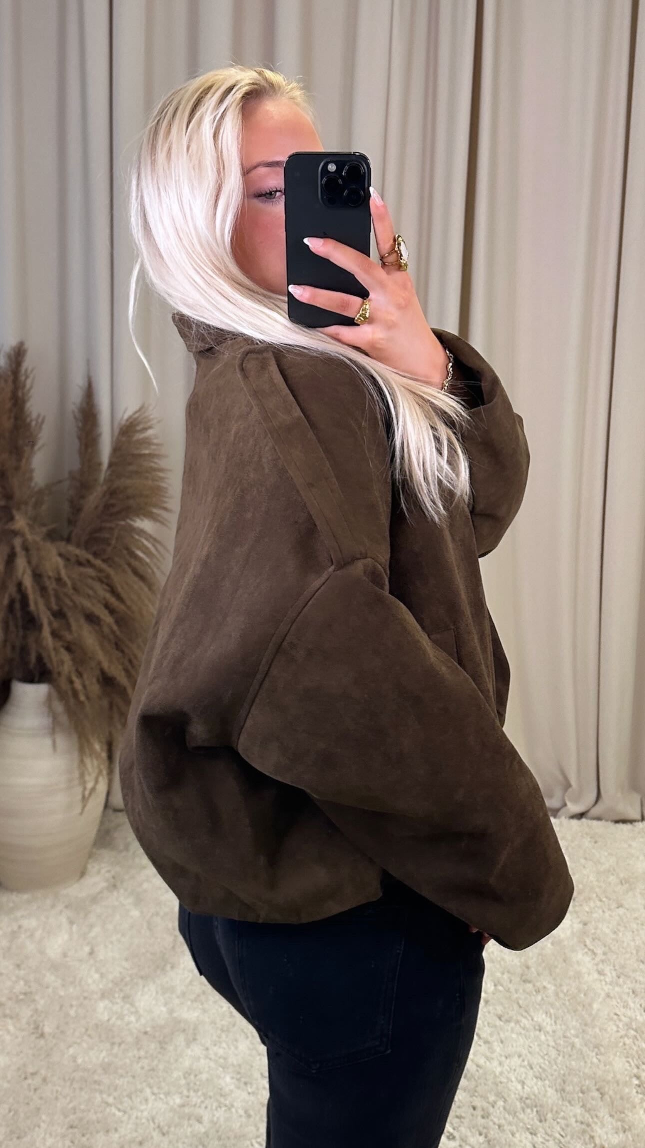 Æðislega flottur jakki úr hágæða vegan rúskinn, það er engin teygja í efninu og er alveg fullkominn fyrir haustið og veturinn.
