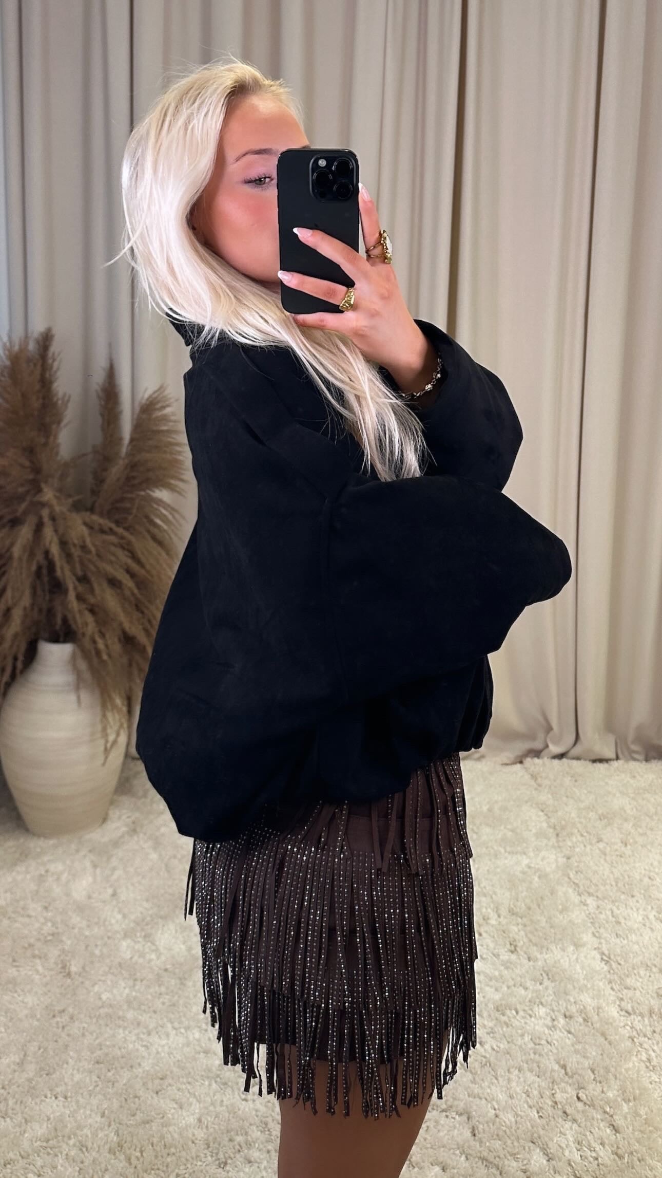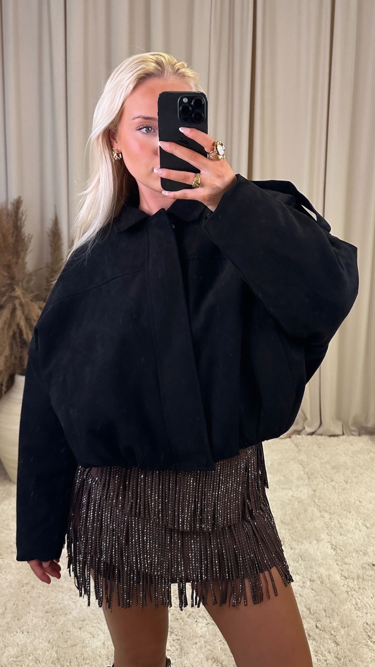 Æðislega flottur jakki úr hágæða vegan rúskinn, það er engin teygja í efninu og er alveg fullkominn fyrir haustið og veturinn.