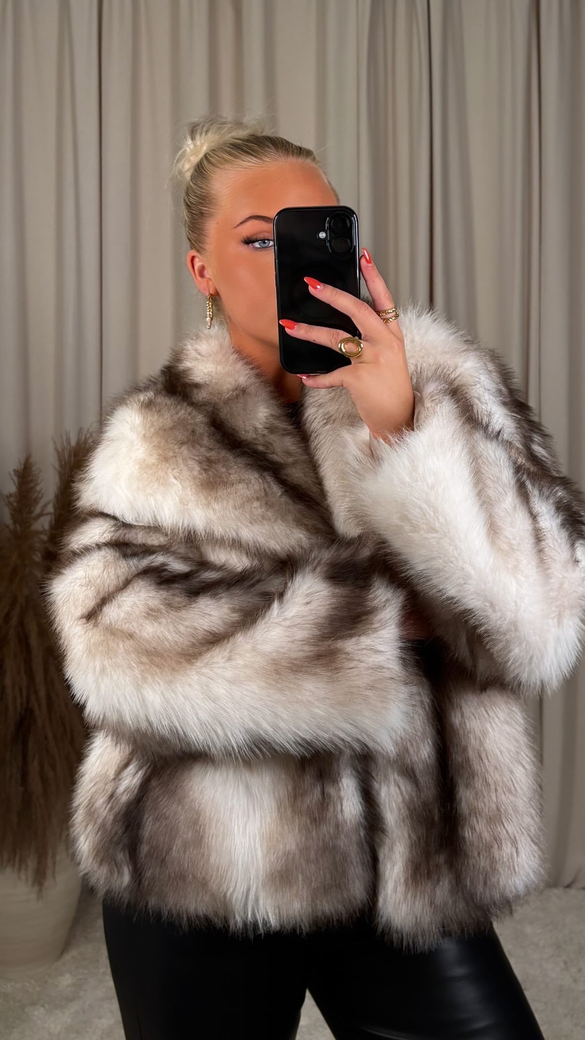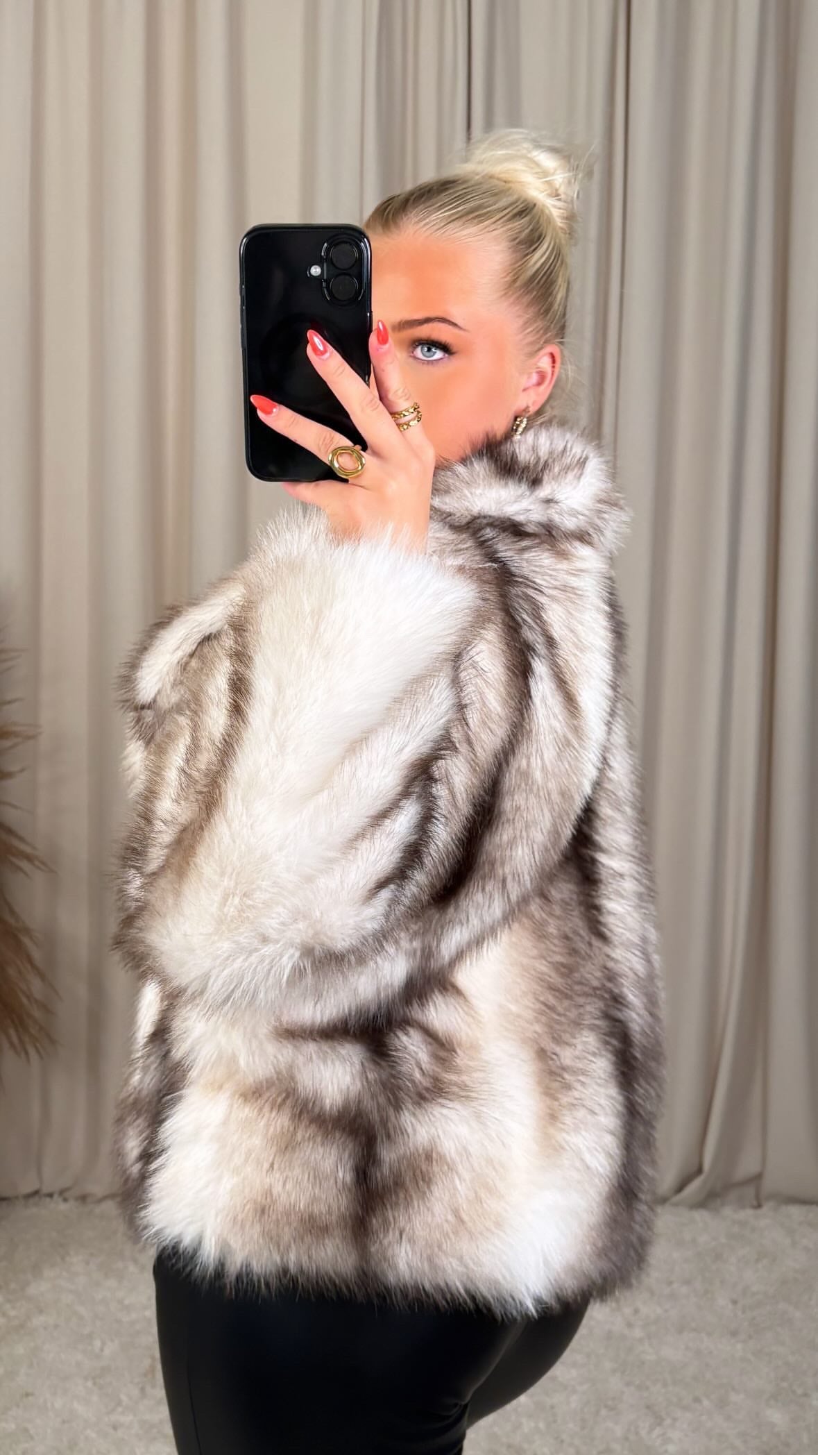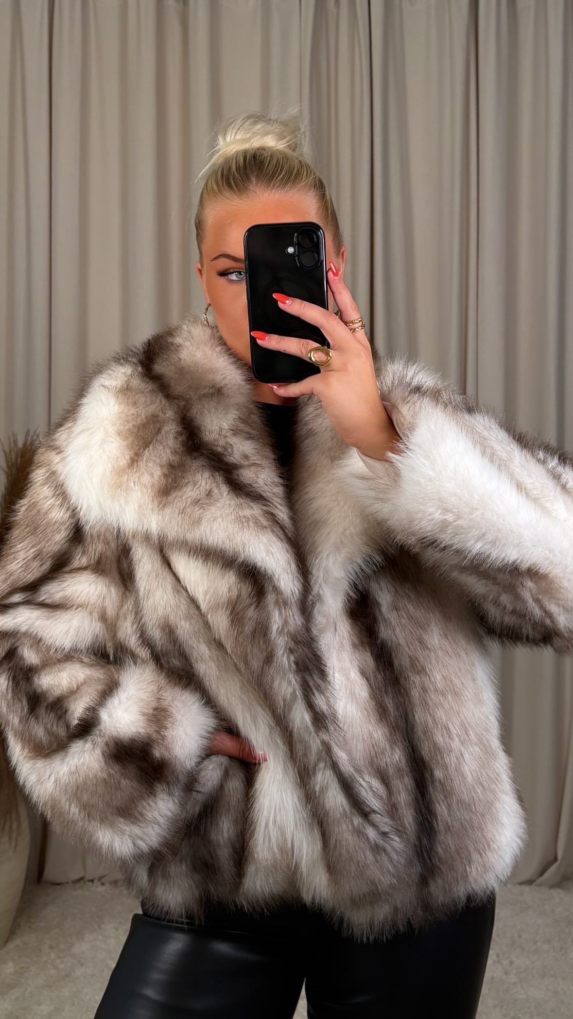 Sjúklega fallegur pels úr hágæða vegan loði, það er engin teygja i efninu og er true to size