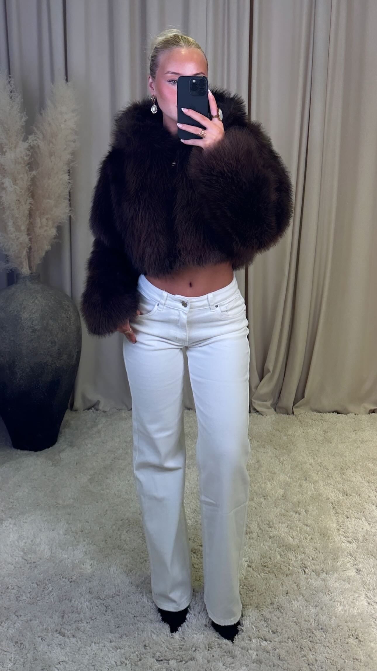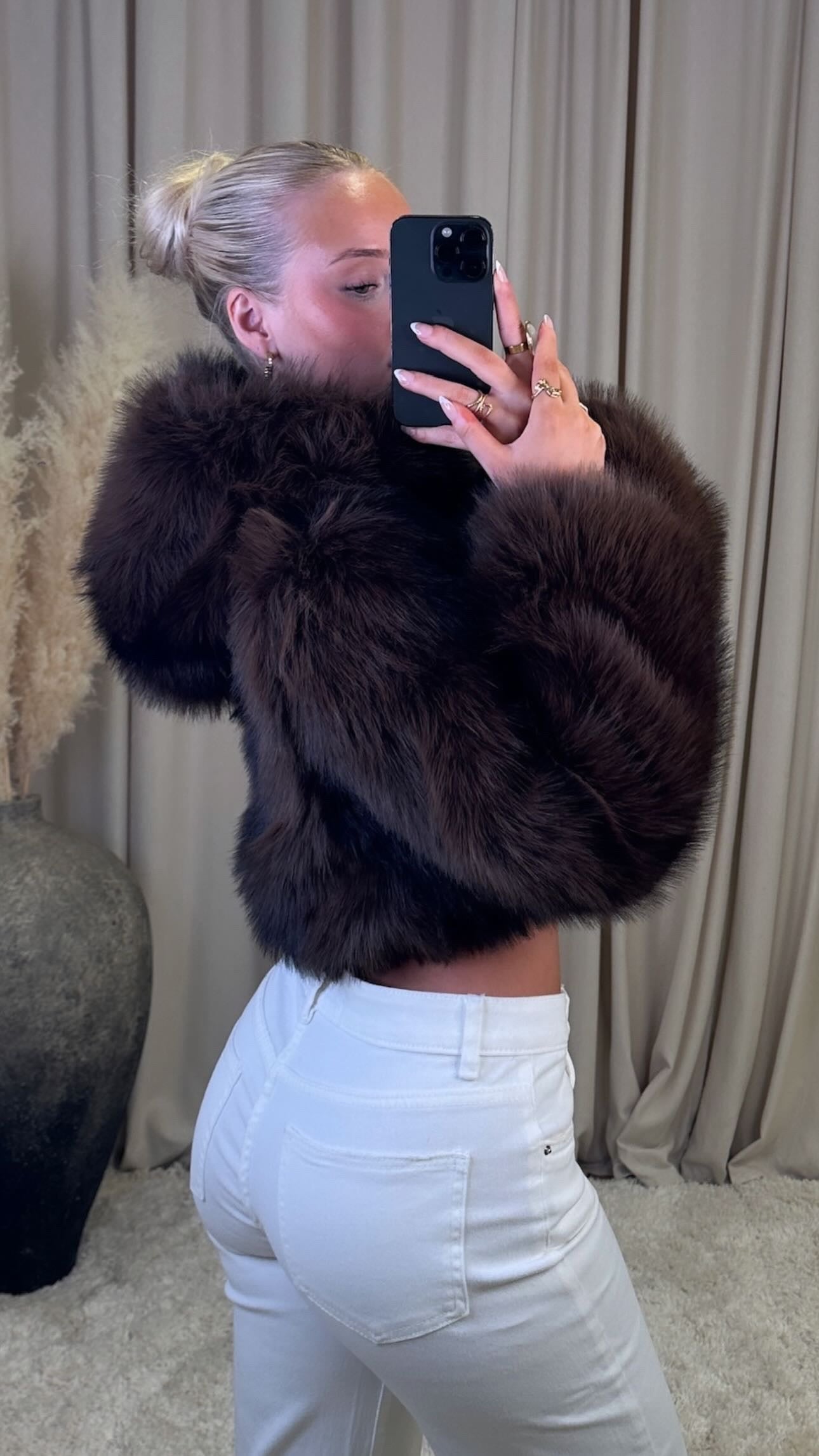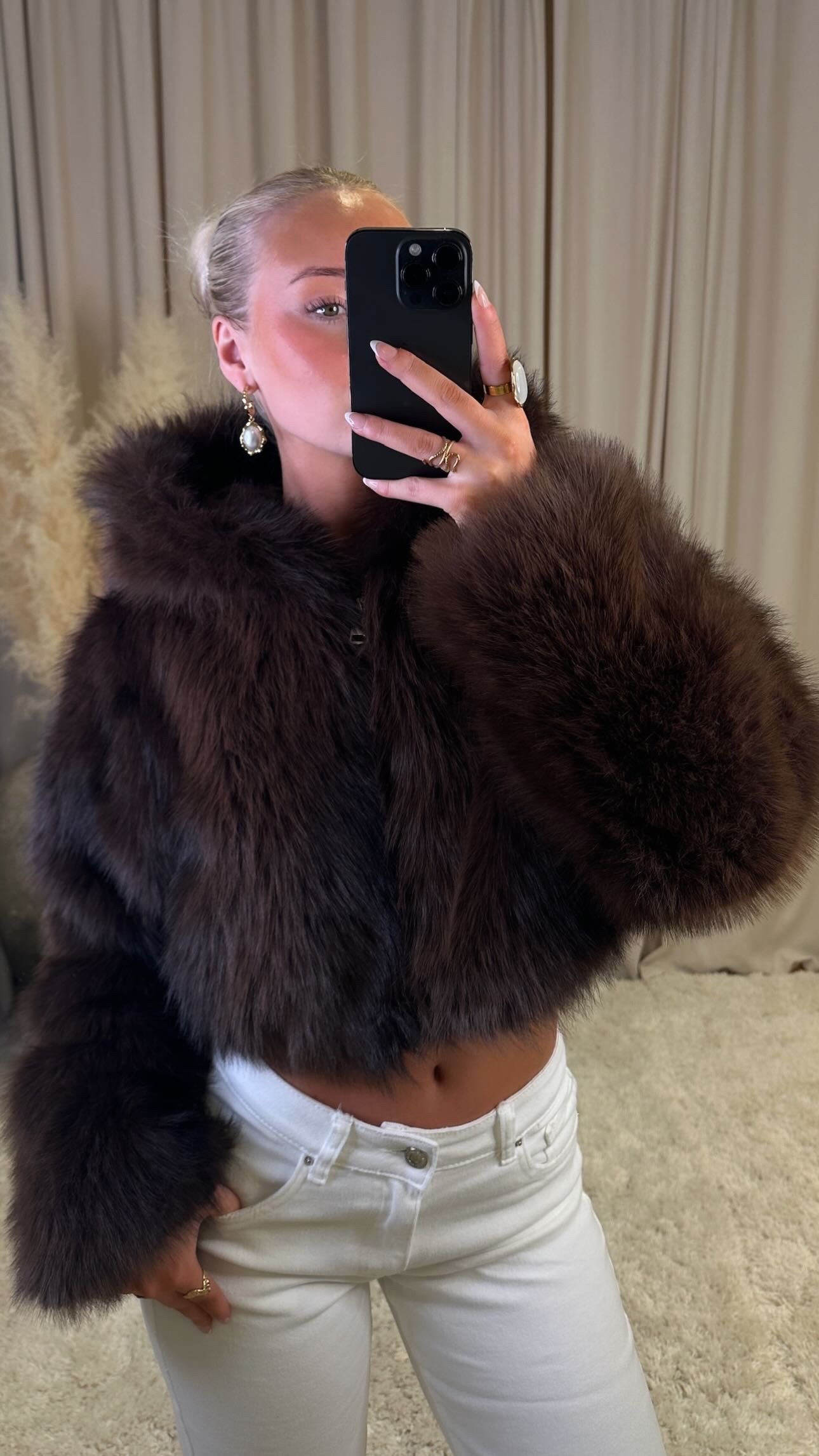 Æðislega fallegur hettupels ur hágæða vegan loði, það er engin teygja í efninu og er með rennilás að framan