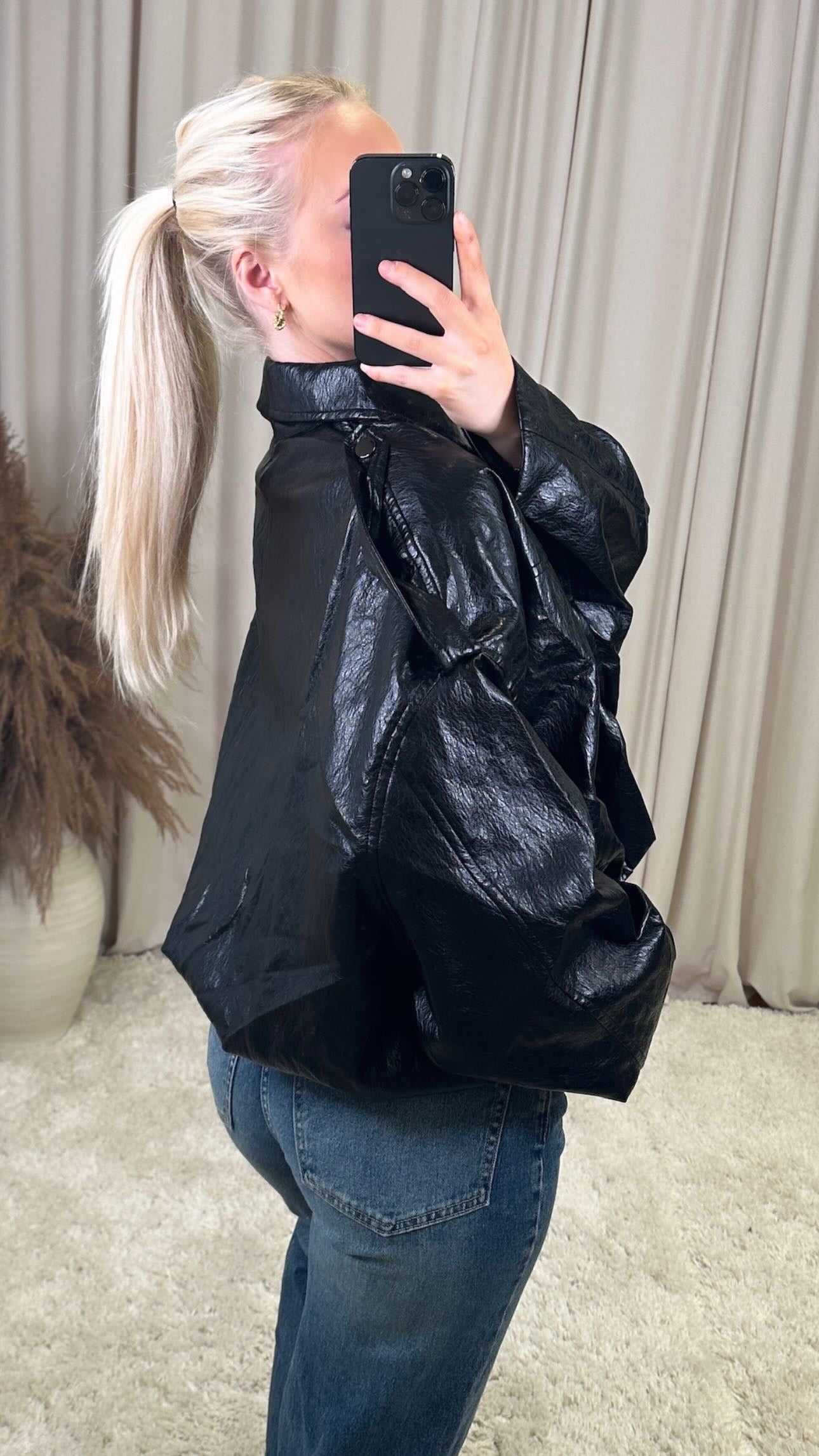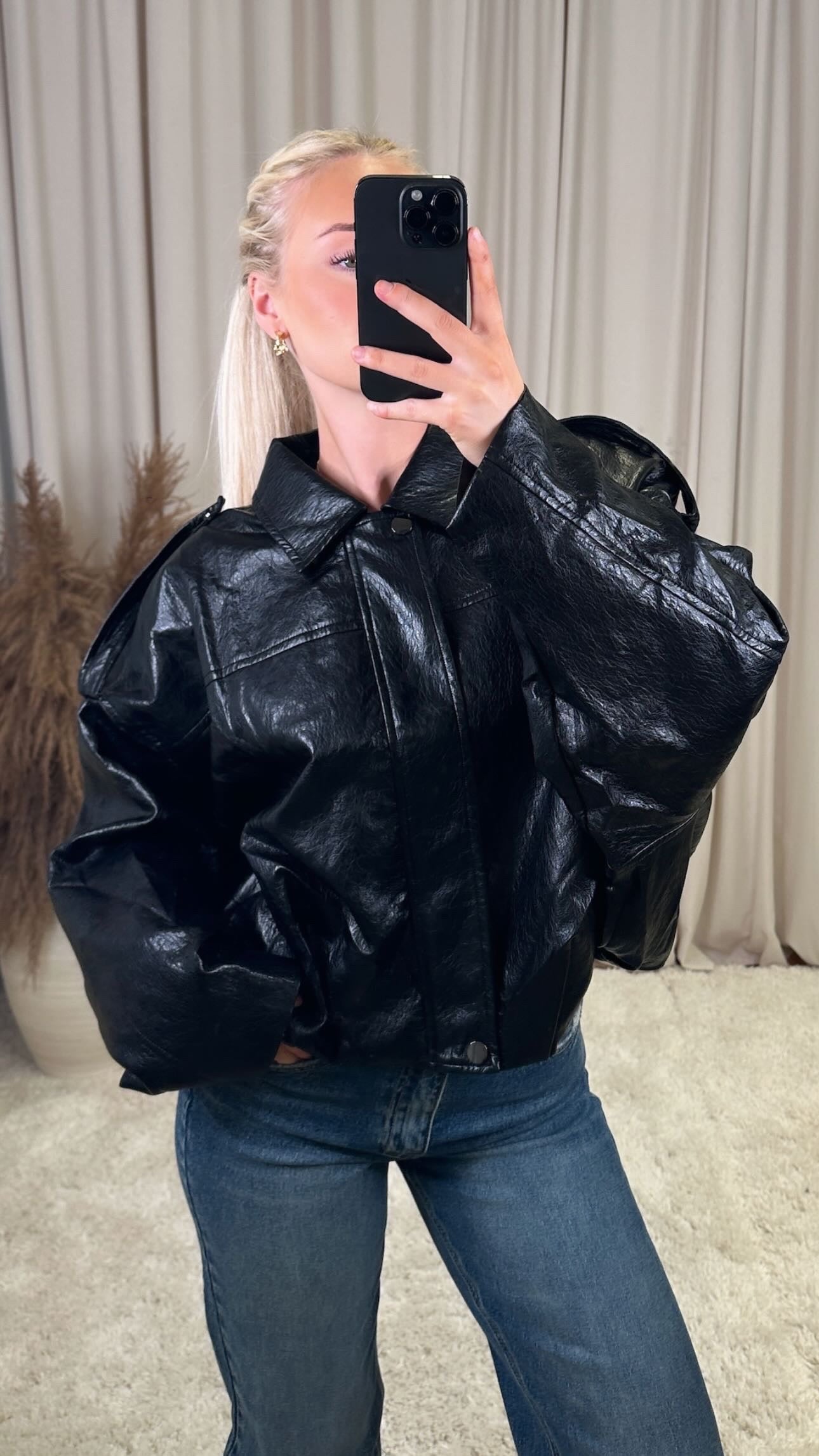 Æðislega flottur bomber jakki úr hágæða vegan leðri, það er engin teygja í efninu og er smá oversized í sniði