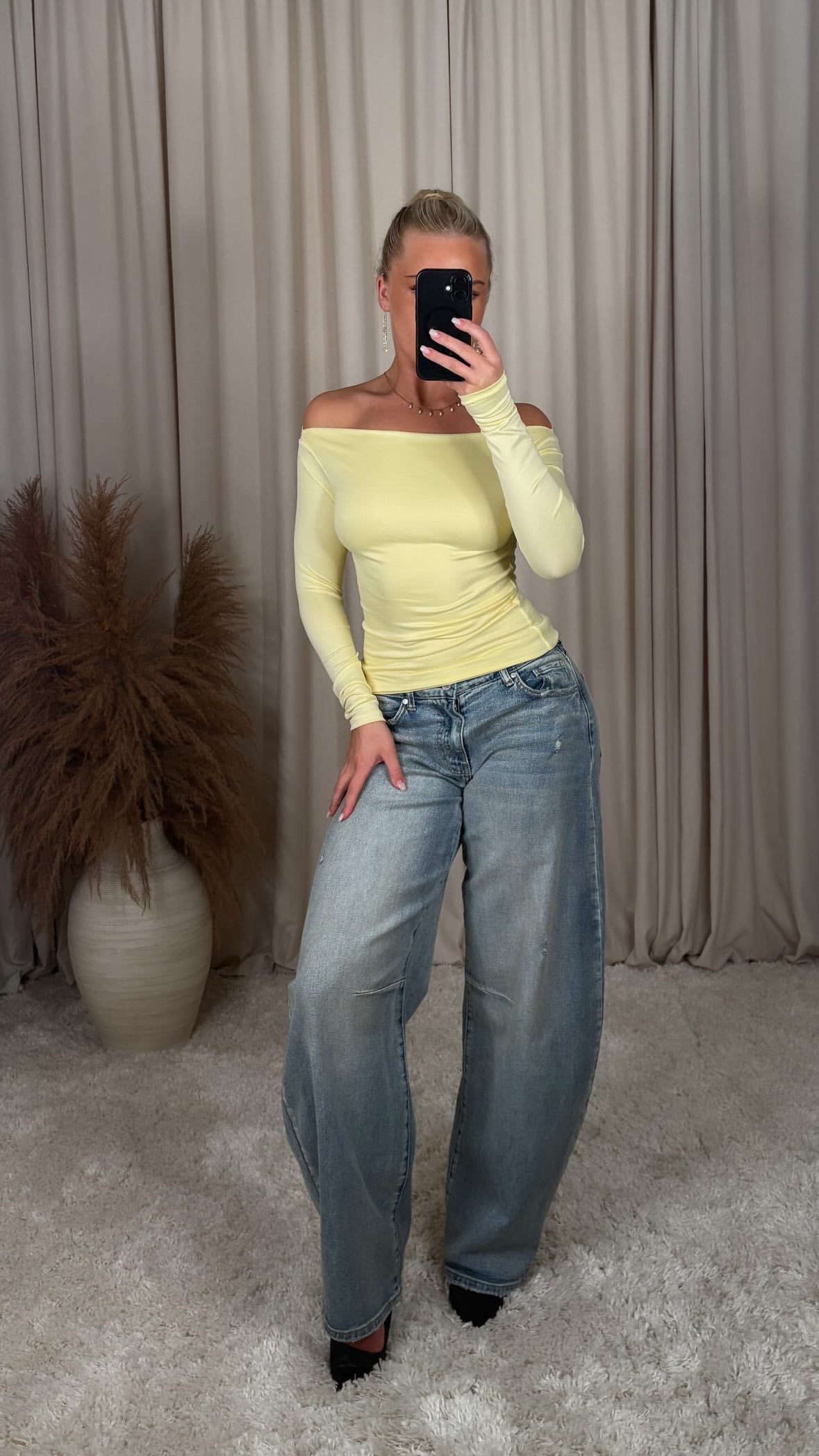 A perfect basic top with a beautiful, tailored cut that shapes the body in a soft and feminine way. The top has a wide boat neckline that emphasizes the collarbone and shoulders and gives a sophisticated, minimalist look.