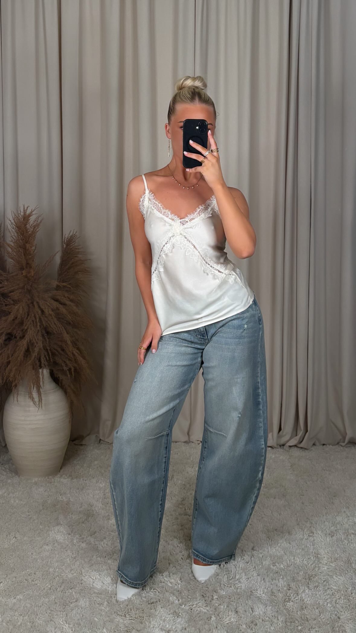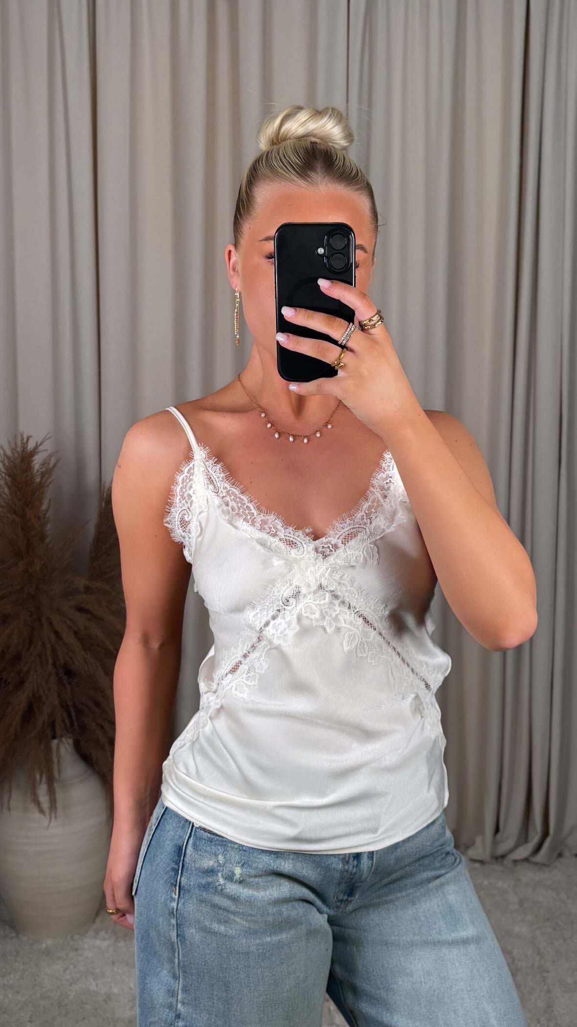 Awesome lace top made of satin material, there is no stretch in the material
