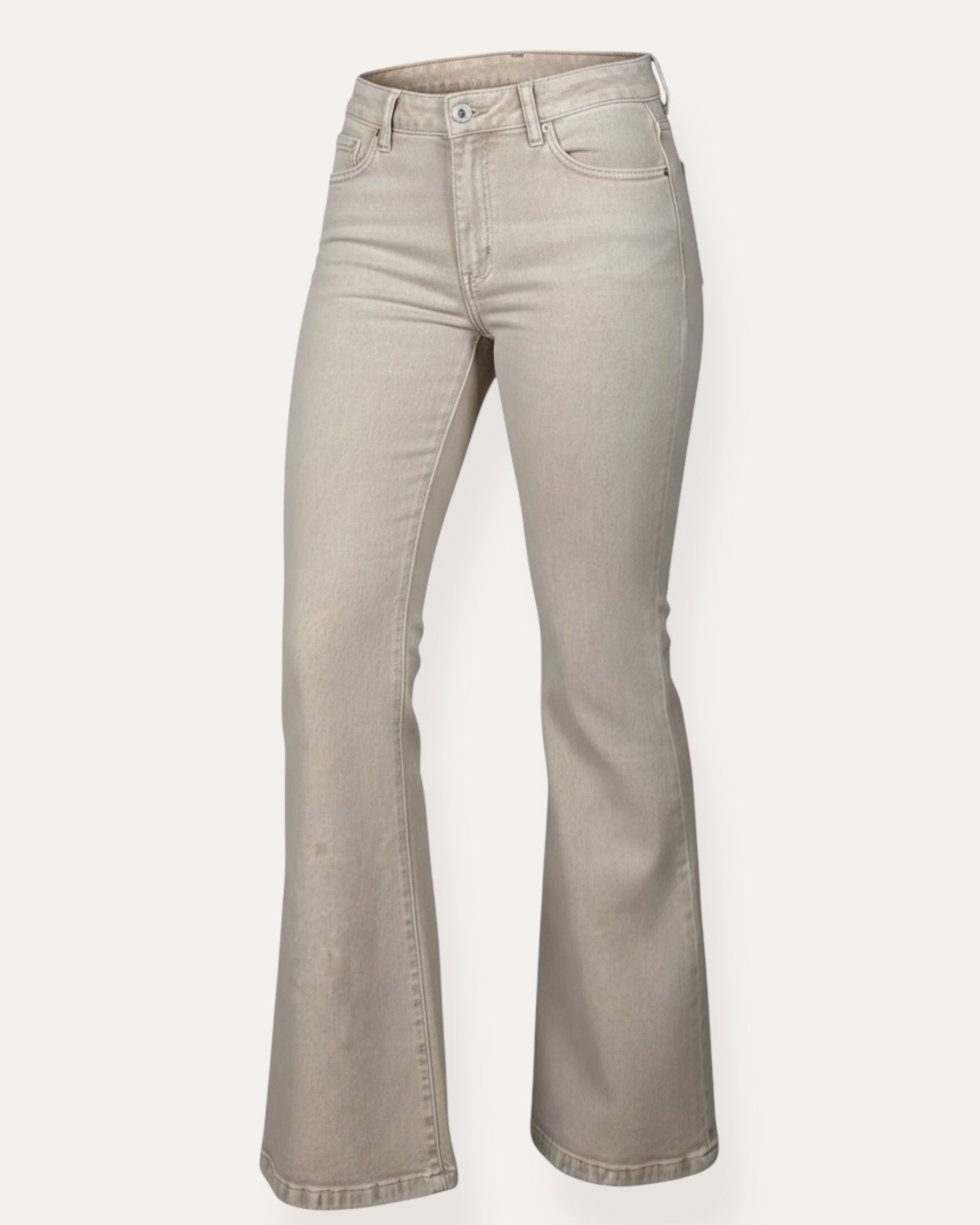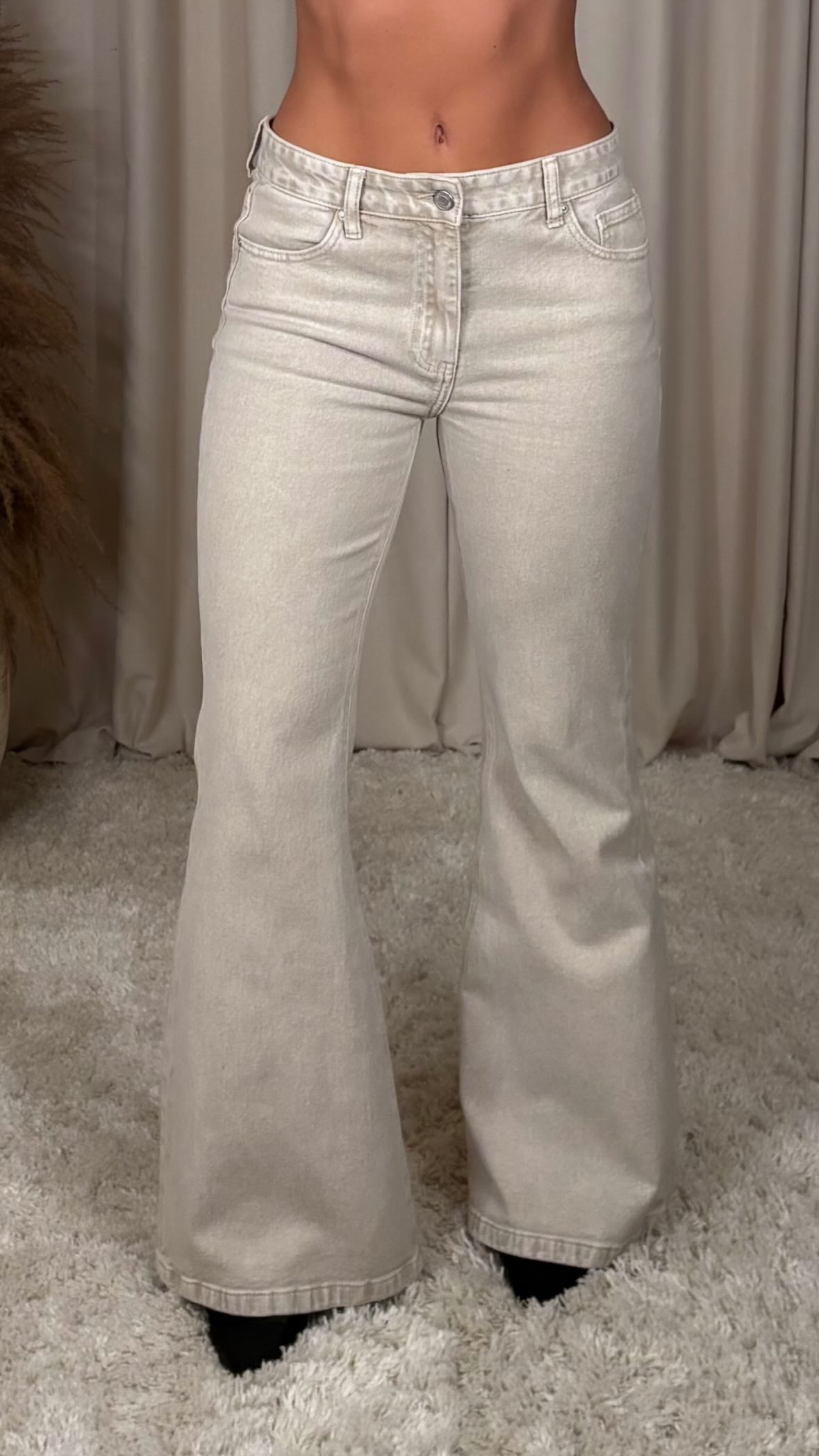 Beautiful mid-waist jeans with a classic flare cut that shapes the waist and elongates the legs. They are cut over the thighs and flare out softly - giving an extra flattering and feminine line.
