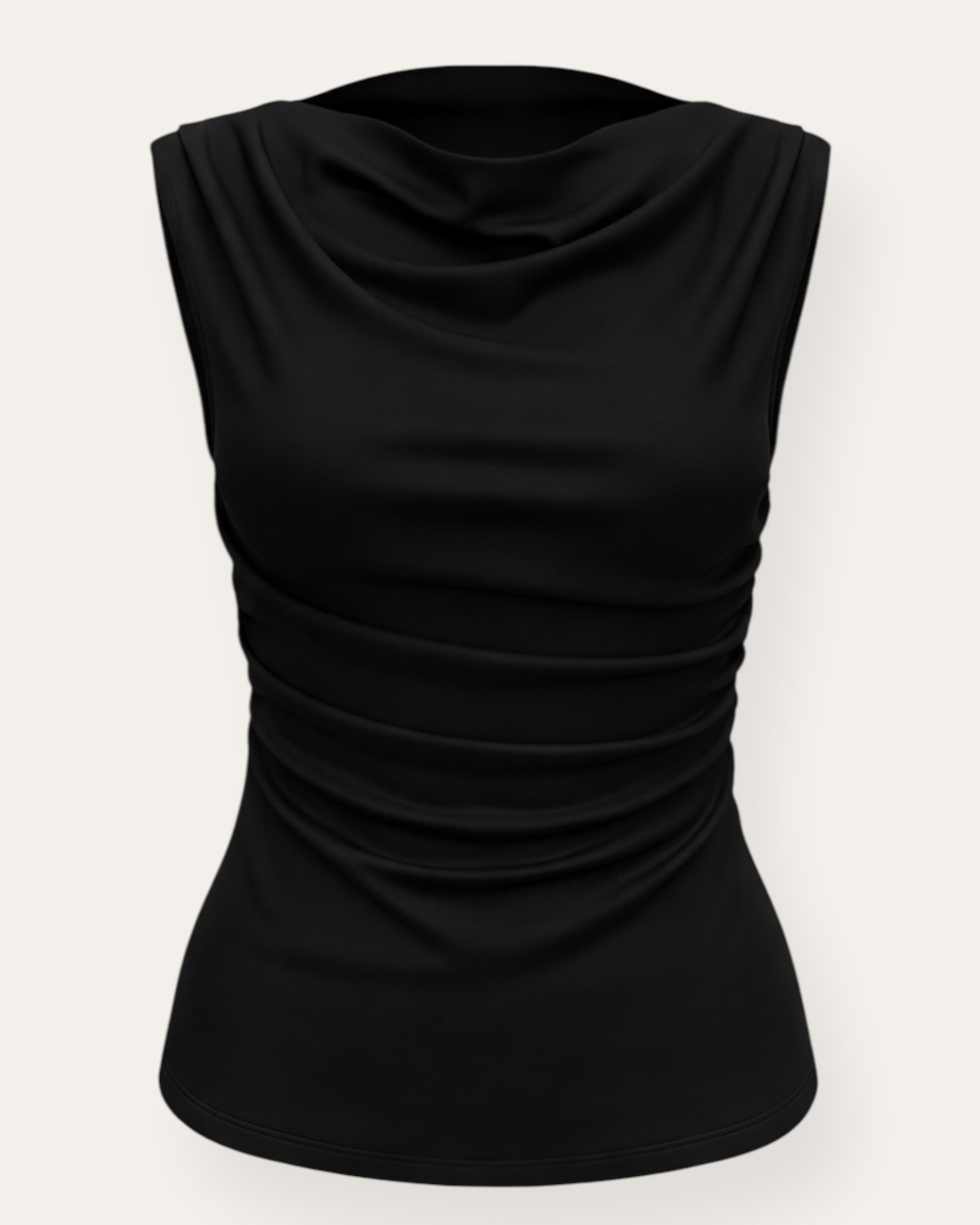 Fallegur og kvenlegur toppur með mjúkri draperingu sem fellur einstaklega vel að líkamanum. Hálsmálið er glæsilegt með léttum fellingum sem gefa toppnum elegant útlit á sama tíma og teygjanlegt efnið mótar fallega siluettu.