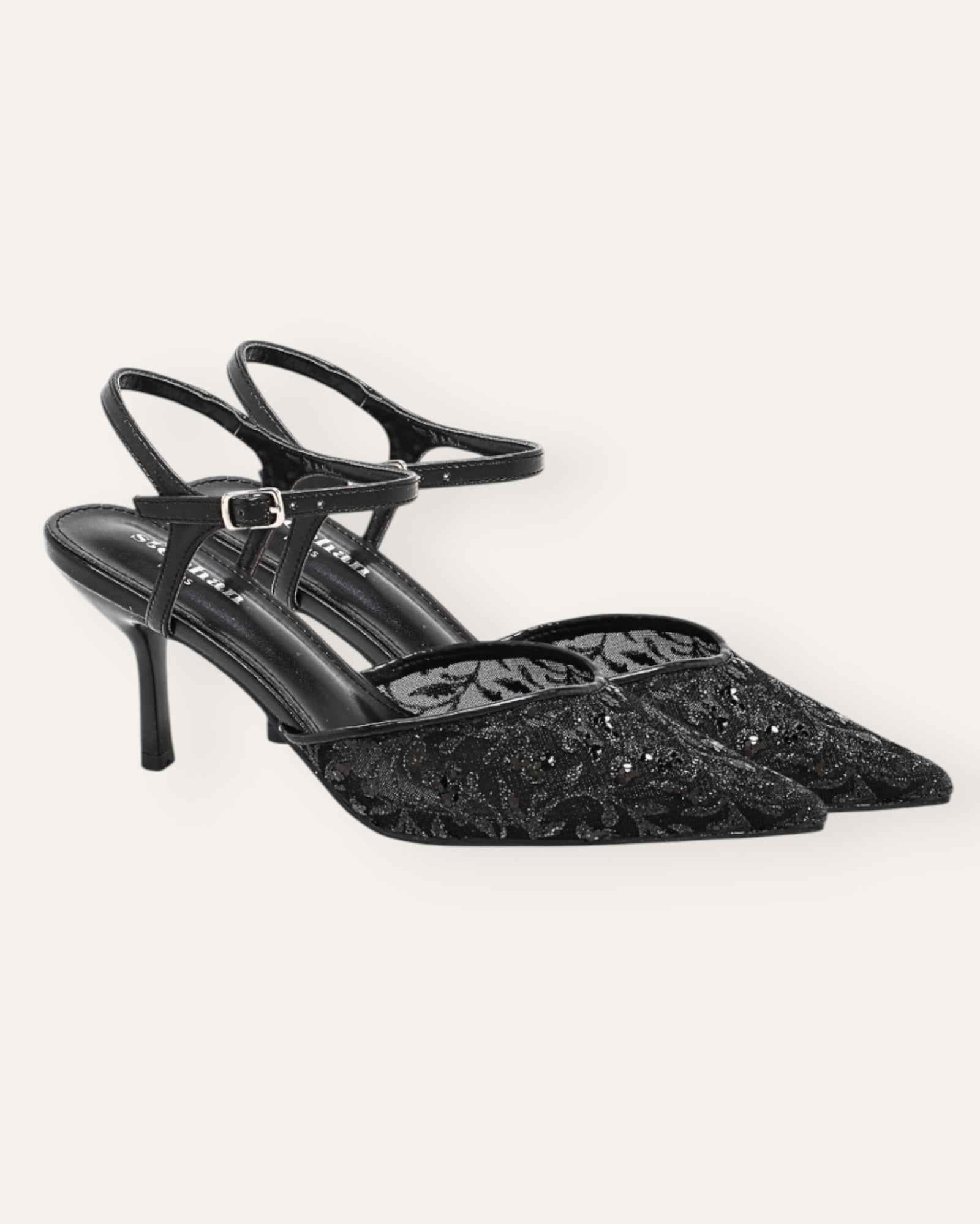 Steph glimmer-lace hælaskór svartur