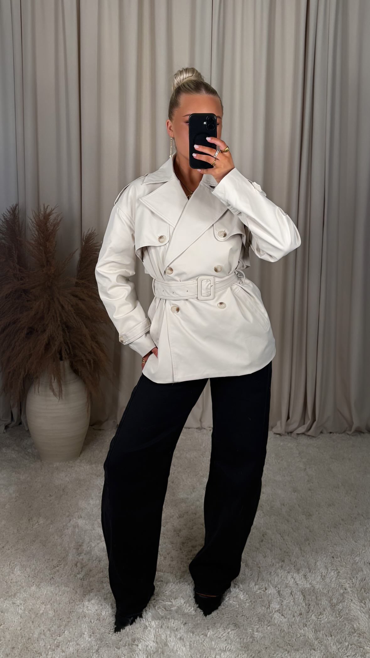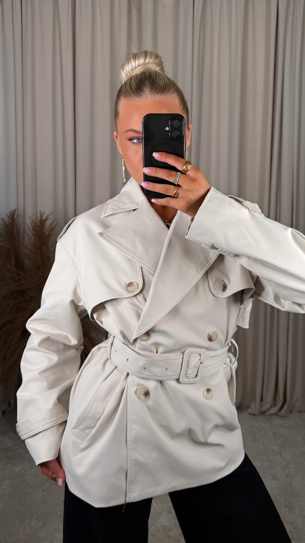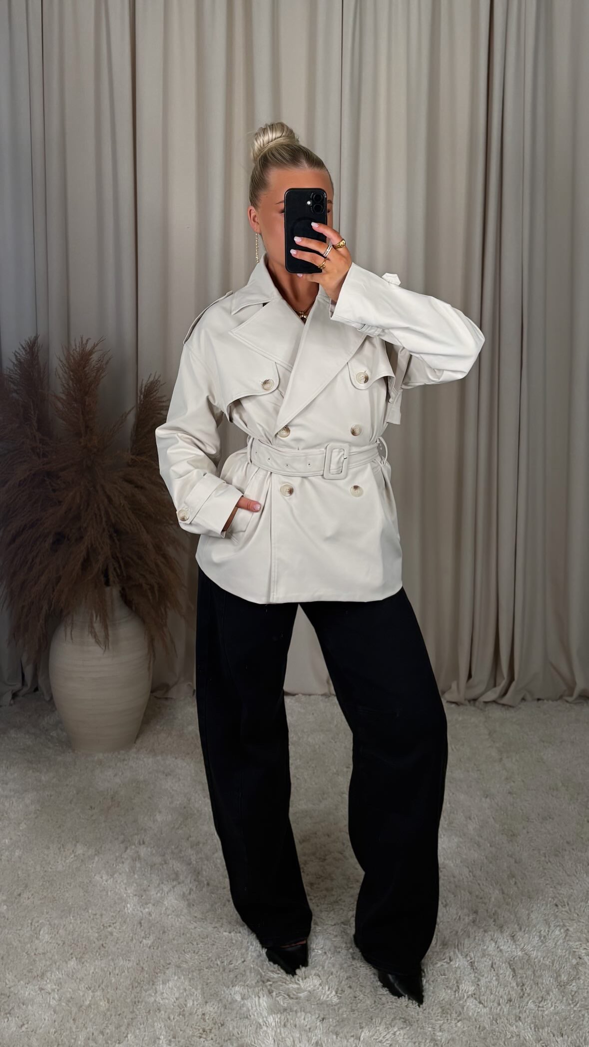 A very cool short trench coat made of very comfortable material, there is no stretch in the material.