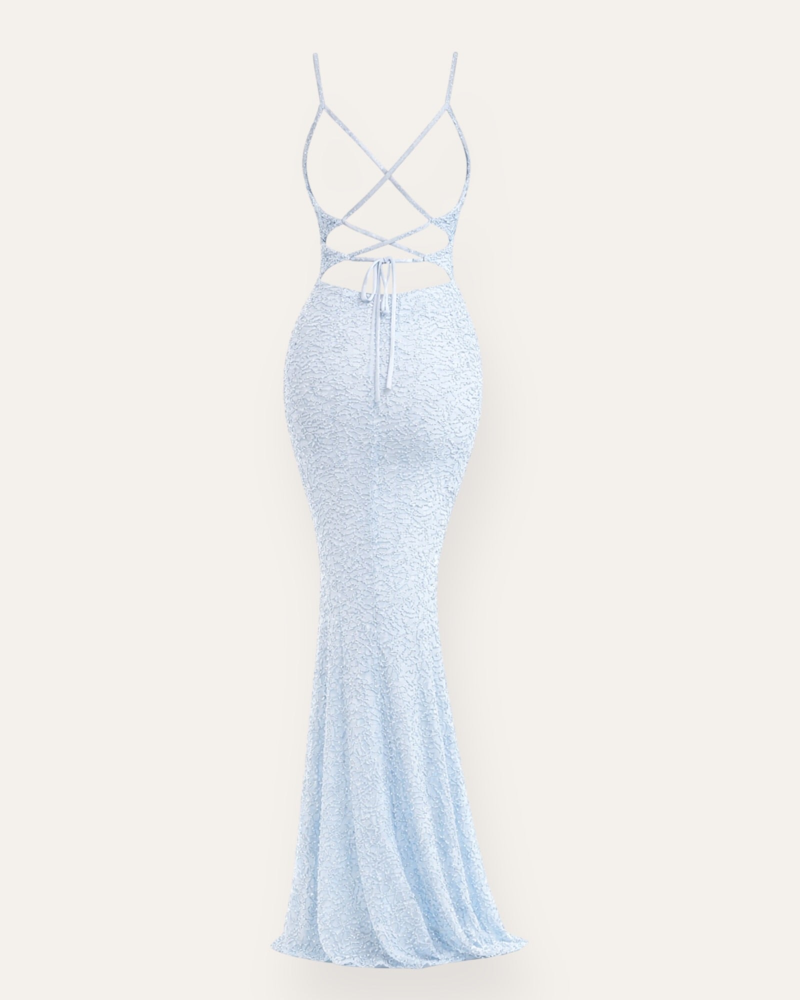 ✨ Elegant maxi kjóll með perlum og opnu baki ✨
