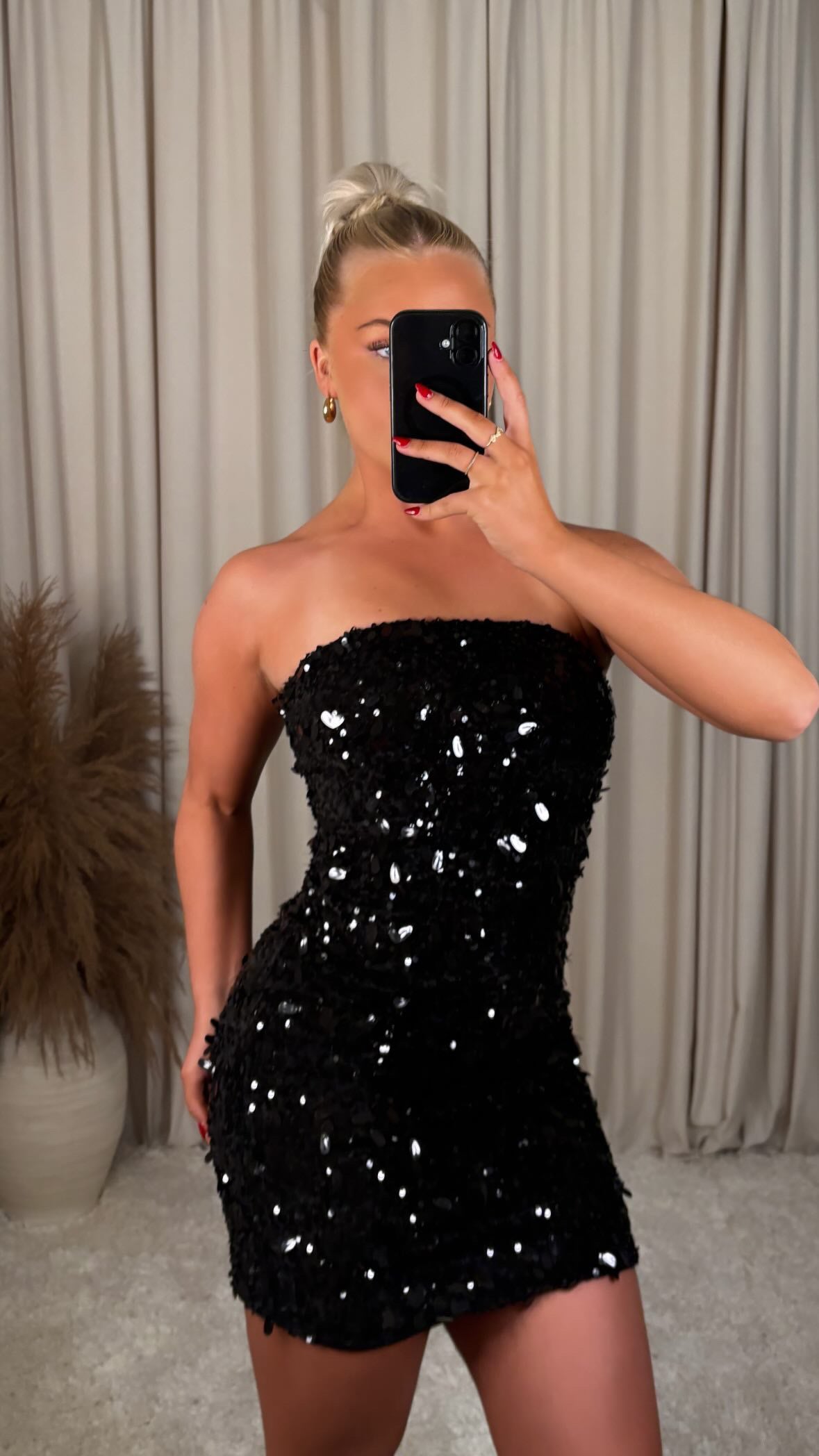 Æðislega fallegur palliettu kjóll úr mjög þæginlegu efni, það er smá teygja í efninu og er með rennilás að aftan