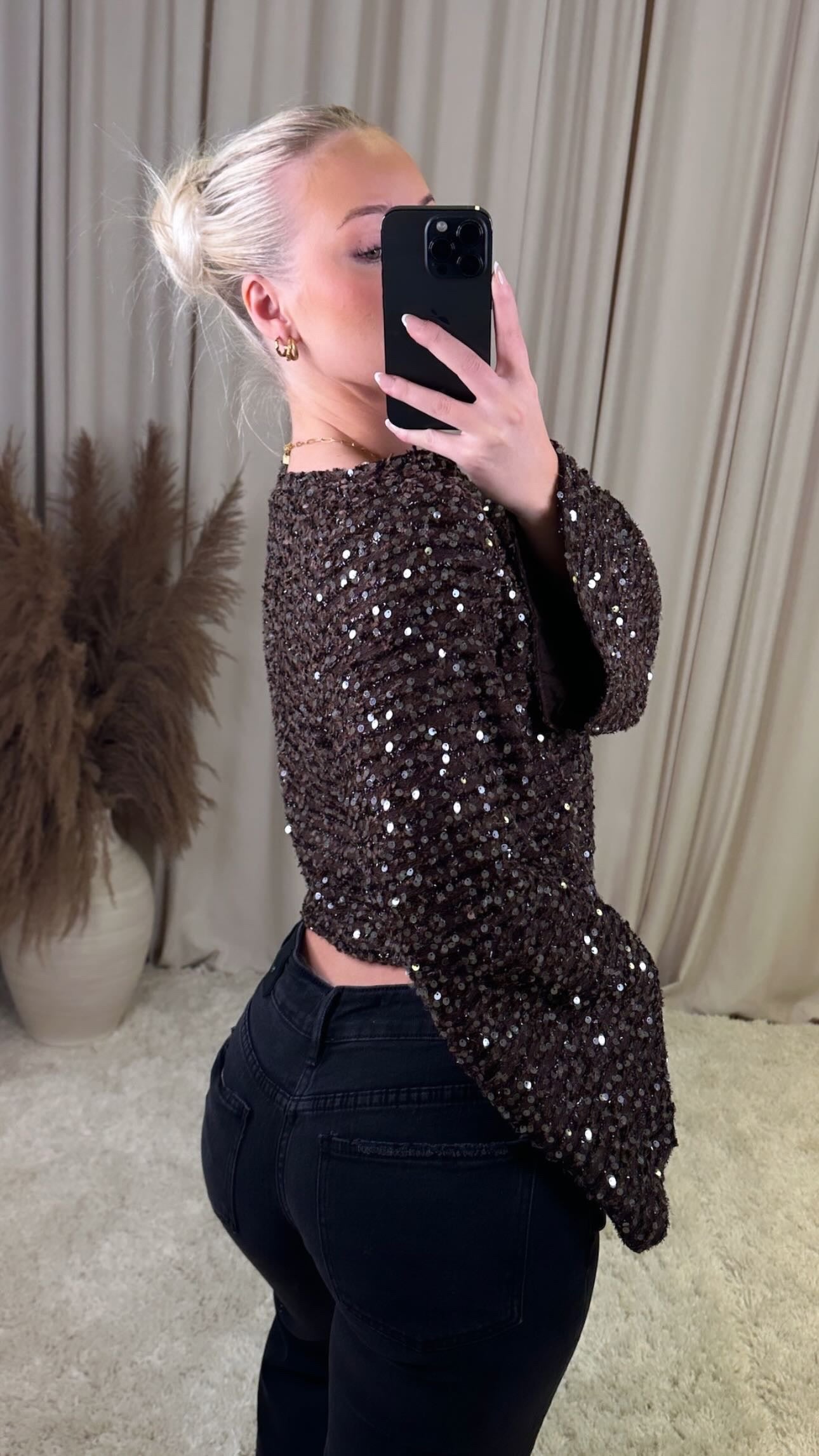 Æðislega flottur pallíettu bolur úr mjög þæginlegu efni, það er engin teygja í efninu og er með tvöfalt efni þannig að pallietturnar stinga ekki í gegn
