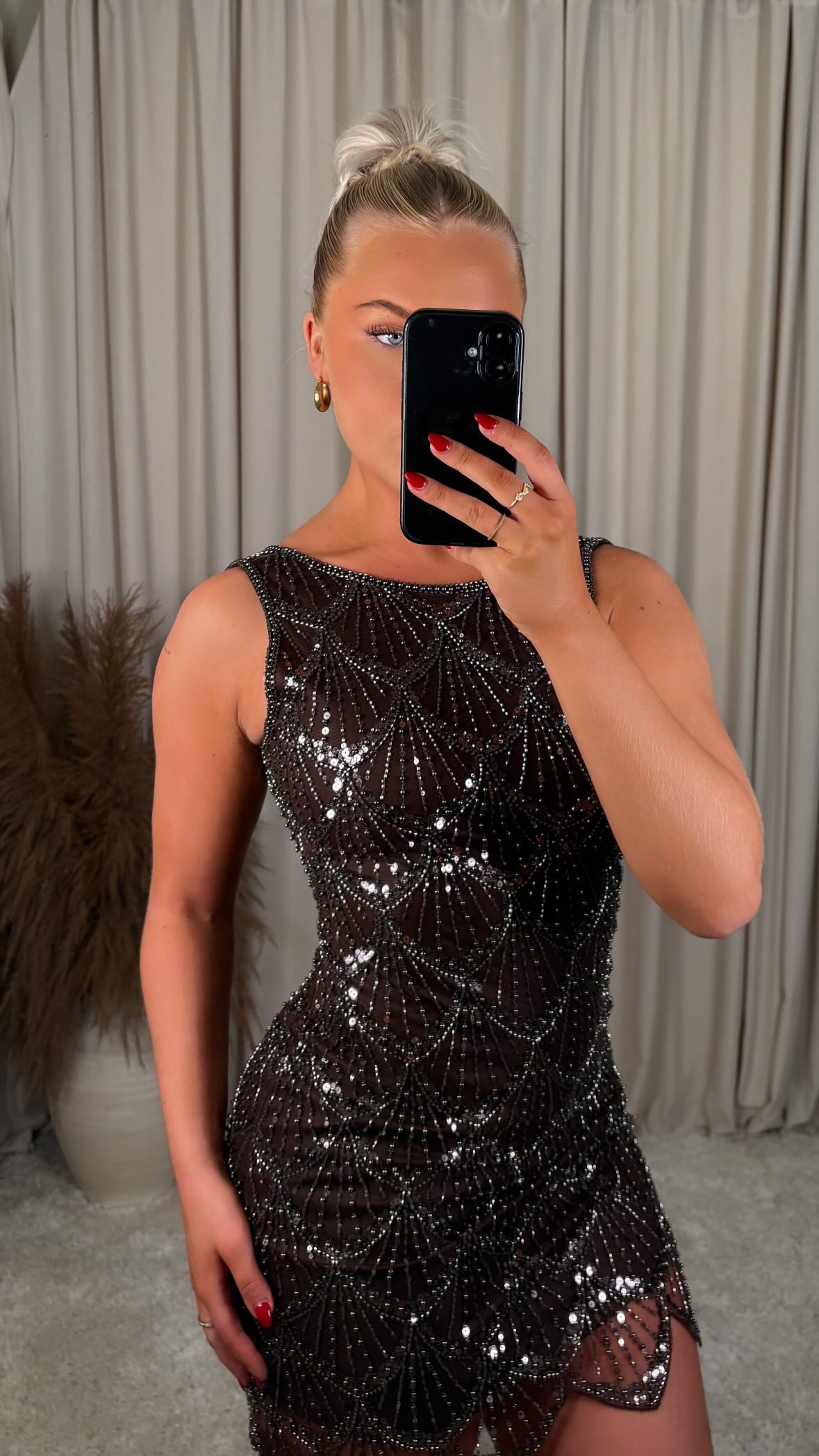Æðislega fallegur pallíettu kjóll úr mjög þæginlegu efni, það er smá teygja í efninu og er með rennilás að aftan