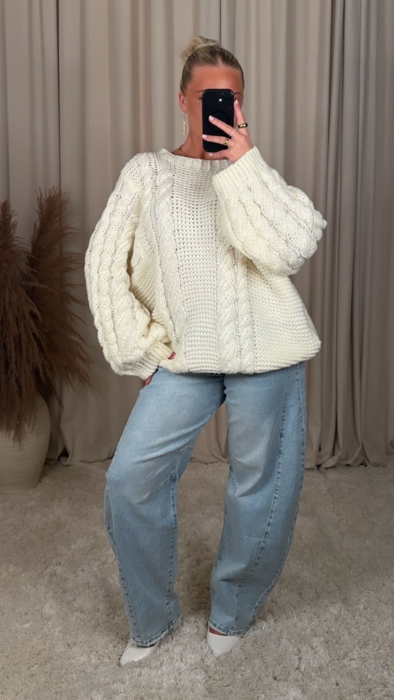 Æðislega fallegt peysa úr mjög mjúku efni, það er teygja í efninu og peysan er mjög oversized í sniði